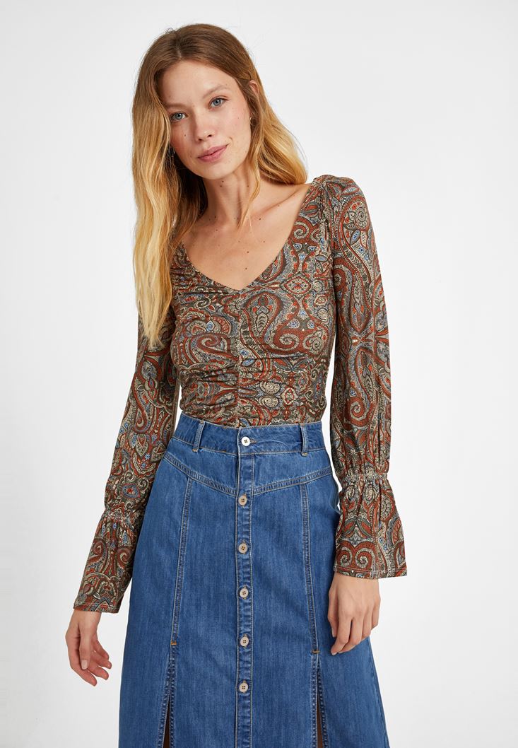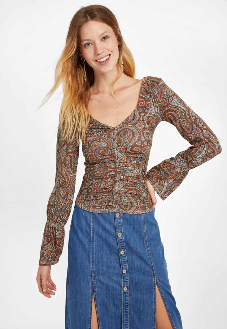 Çok Renkli Büzgü Detaylı Bluz modeli, etnik desenlerden gelen hoş motifler ve sıcak renklerin birleşimini sizlerle buluşturuyor. kadın bluz modeli, önü büzgülü olan yapısı ve kol kısmında da büzgü ile taçlandırılan volanlı kol detayı ile ön plana çıkıyor. Uzun kollu bluz modeli, özgün tasarımı sayesinde, kadın etek modelleri ve ispanyol paça pantolon modelleri ile yaptığınız kombinlere ahenk katıyor. Etnik görünümüyle tarzınıza ilham veren kadın bluz modeli ile kombinize ekleyeceğiniz kadın bol paça pantolon modelleri eşliğinde, benzeri görülmemiş bir şıklığa ulaşabilirsiniz. Oxxo’nun modaya uygun olan ve her sezon trendler arasında yer almayı başaran kadın bluz modelleri ile elde ettiğiniz görünüm sayesinde, tarzınızı istediğiniz gibi yansıtabilirsiniz.