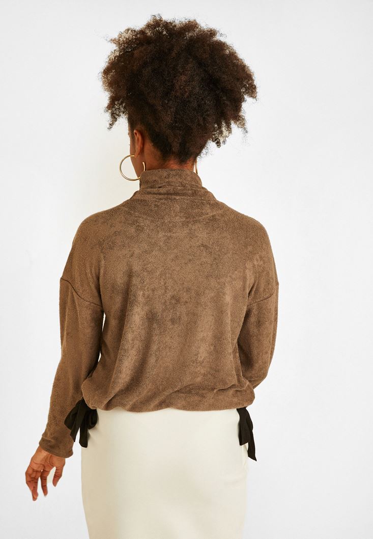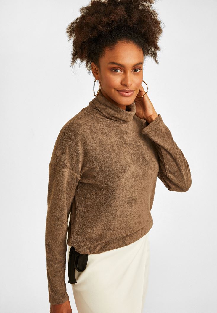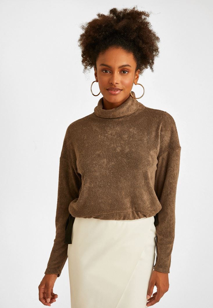 • Bayan Kahverengi Büzgü Detaylı Bluz