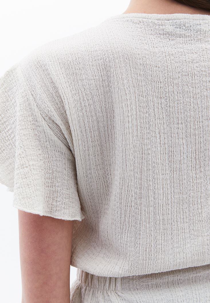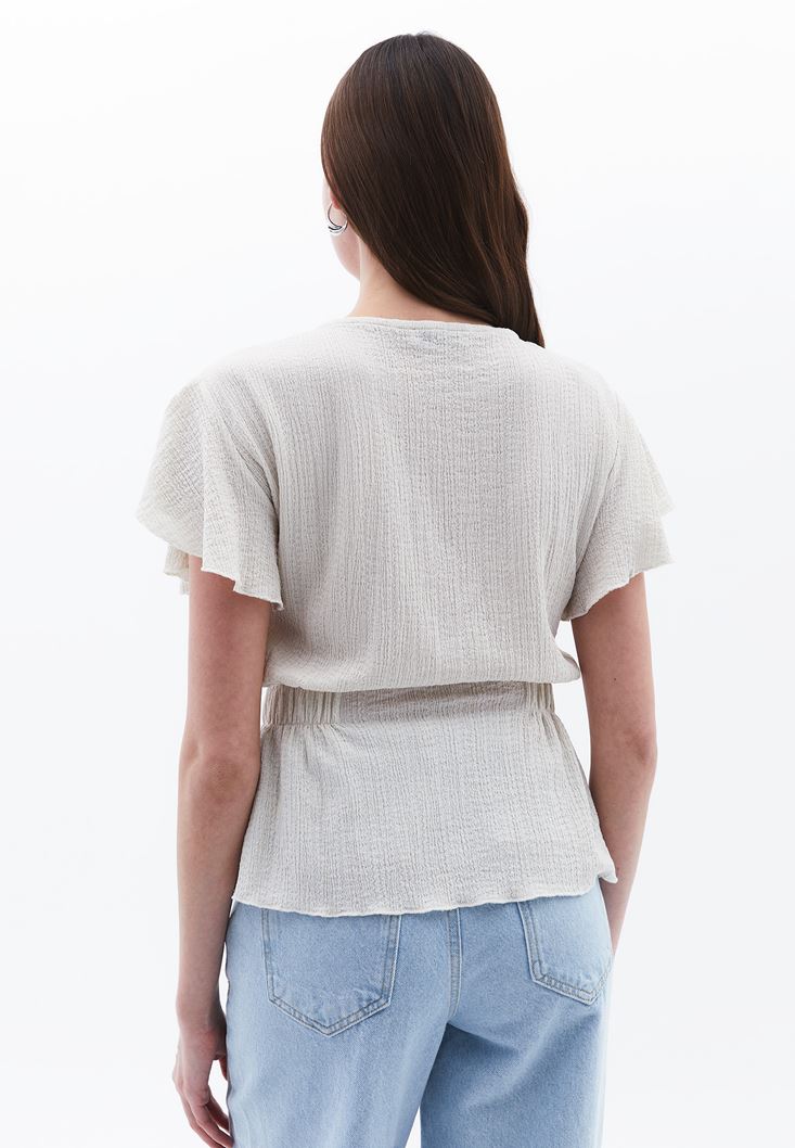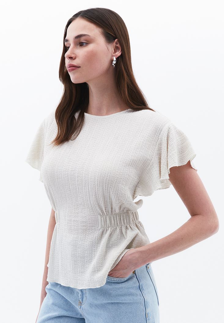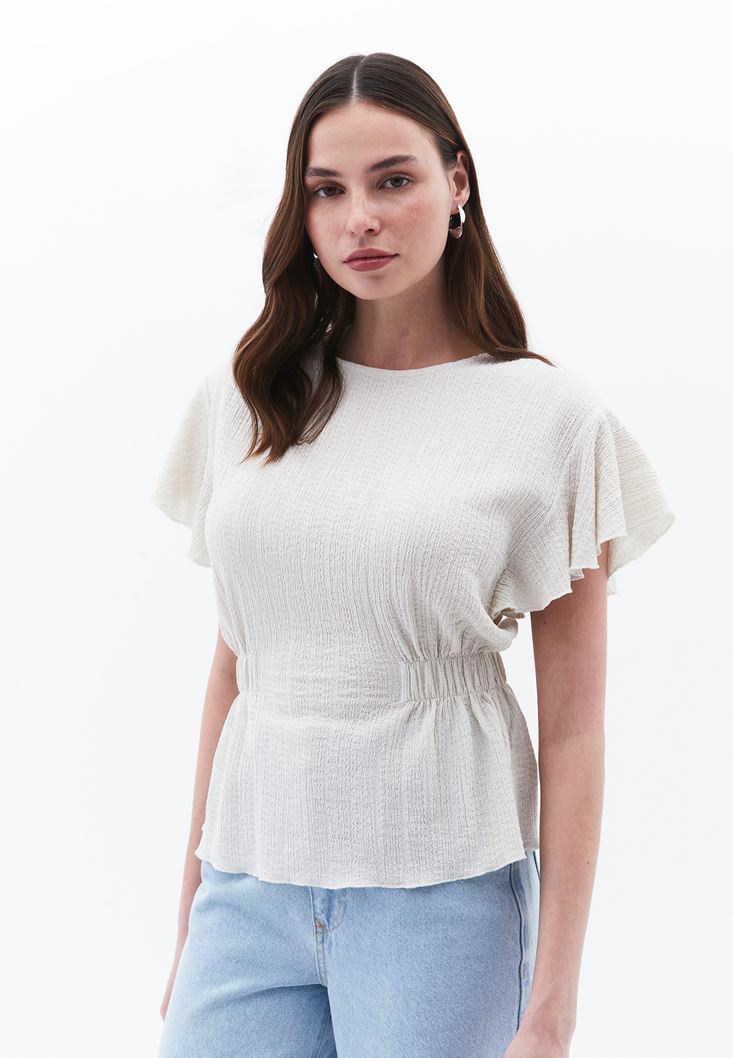 Krem Büzgü Detaylı Bluz