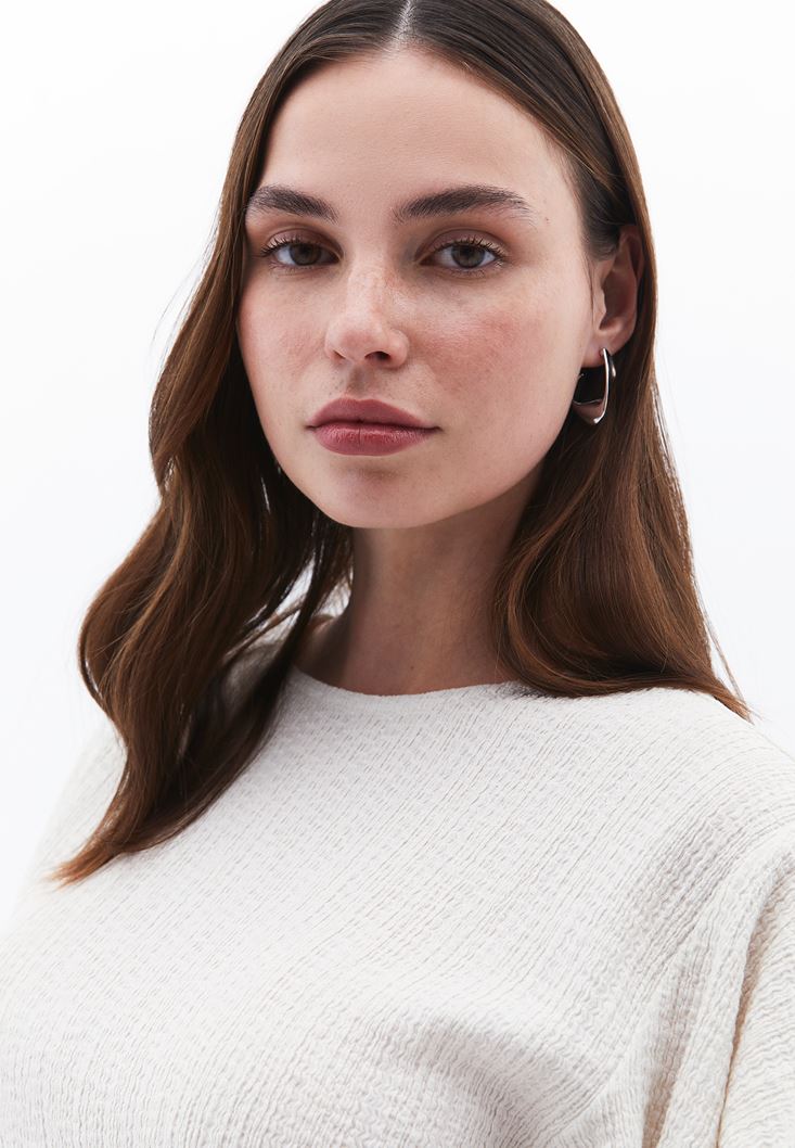• Bayan Krem Büzgü Detaylı Bluz