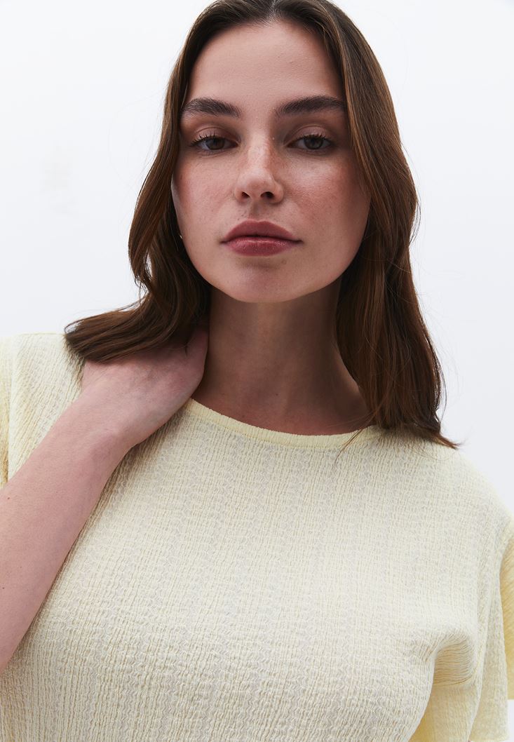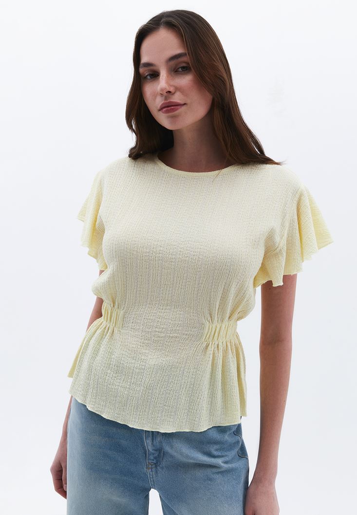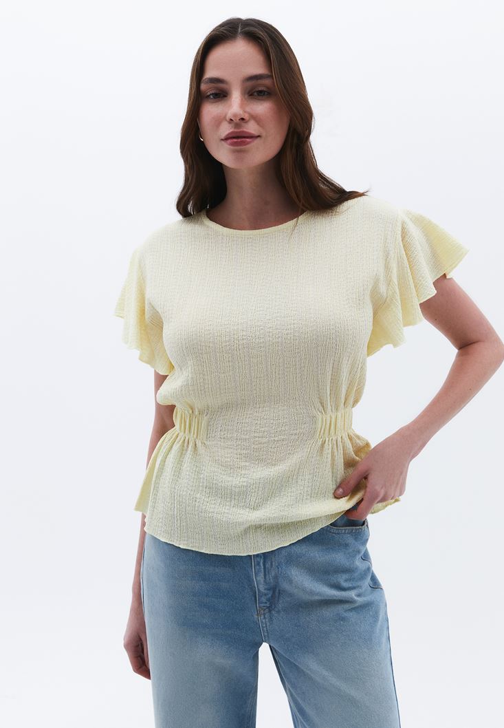 Sarı Büzgü Detaylı Bluz