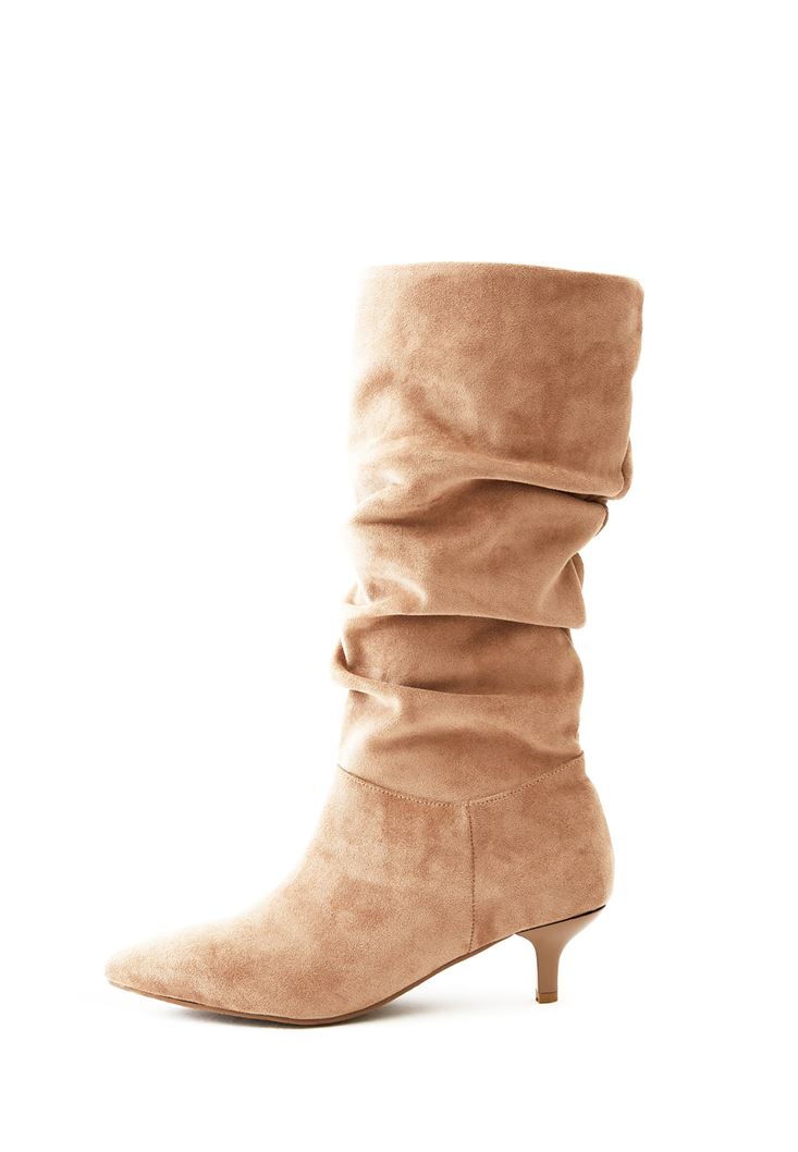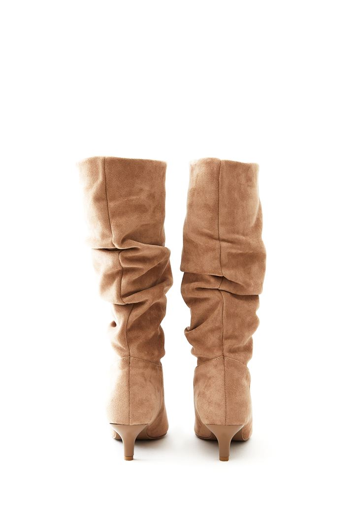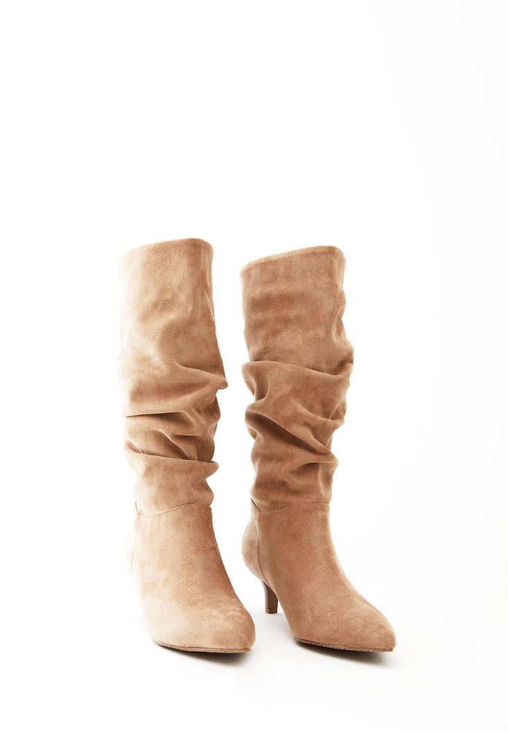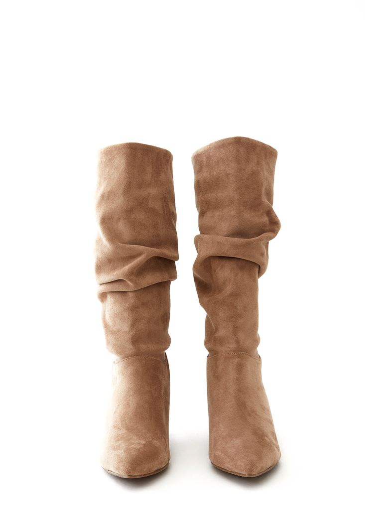 • Bayan Bej Büzgü Detaylı Çizme