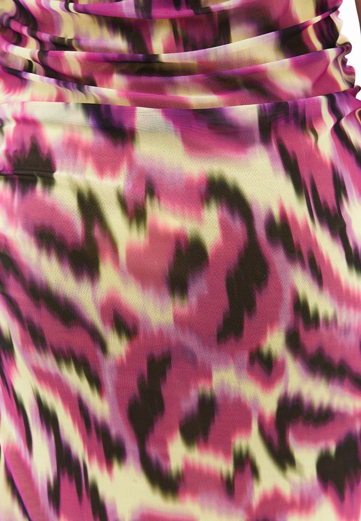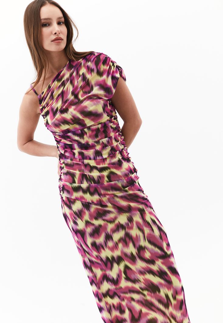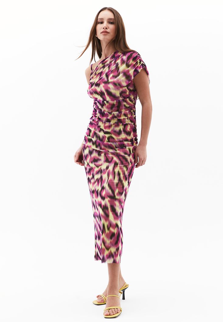 Çok Renkli Büzgü Detaylı Midi Elbise