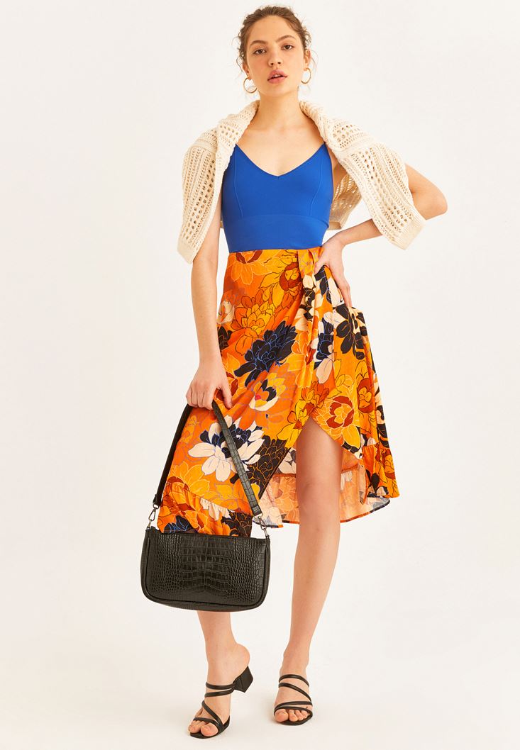 Büzgü Detaylı Midi Etek modeli, viskon içerikli harika dokusu ve hareketli görünümü ile yeni sezonu karşılıyor. Kadın etek modeli, ön kısmındaki büzgü detayı ile fazlasıyla dikkat çekiyor. Oxxo'da karşınıza çıkan midi etek modeli, günlük kombinleriniz için benzersiz bir seçenek oluyor. Kadın etek modelini, desenli bluzlarla dilediğiniz gibi kullanabilirsiniz. Sezon trendi olan topuklu terlikleri de midi etek modeliyle bir araya getirebilirsiniz. Oxxo'nun hayran bırakan desenlerle sizlere sunduğu kadın etek modelleri sayesinde çekici bir duruş yakalayabilirsiniz.