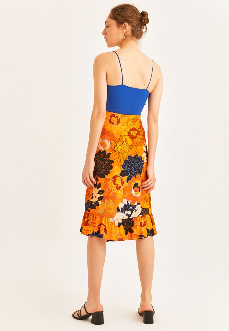 • Bayan Çok Renkli Büzgü Detaylı Midi Etek