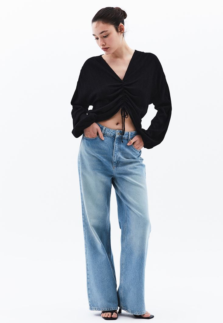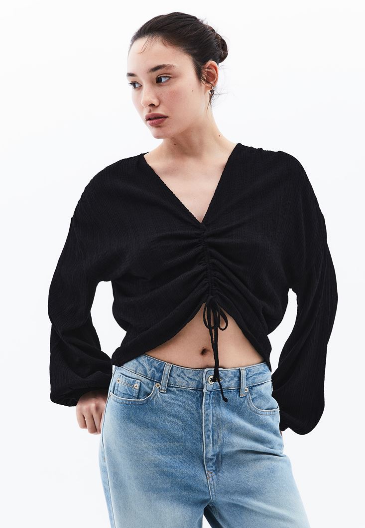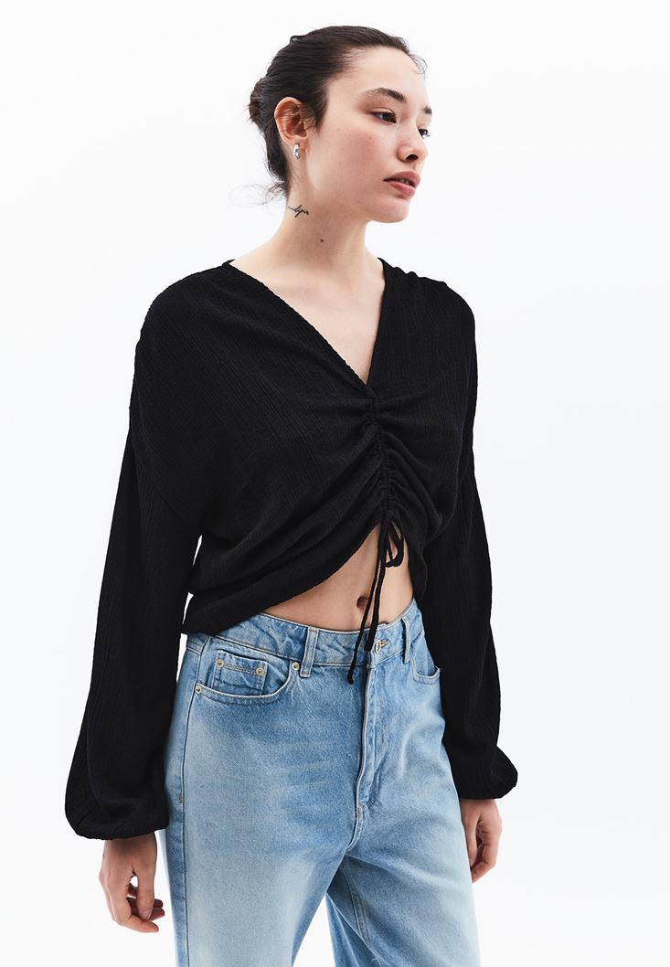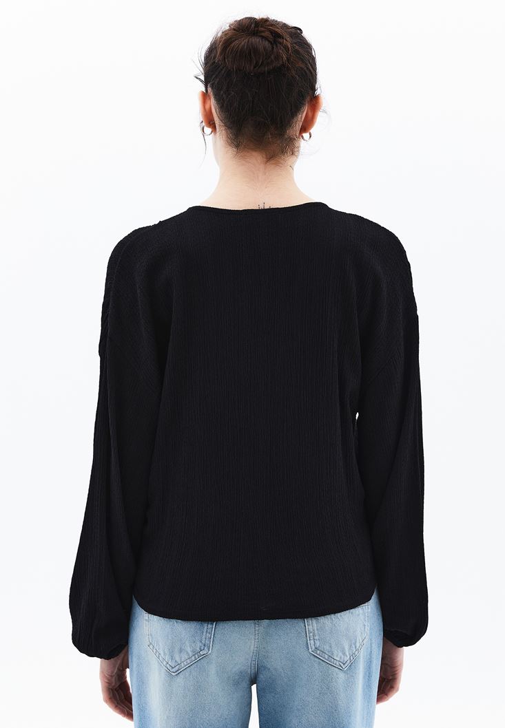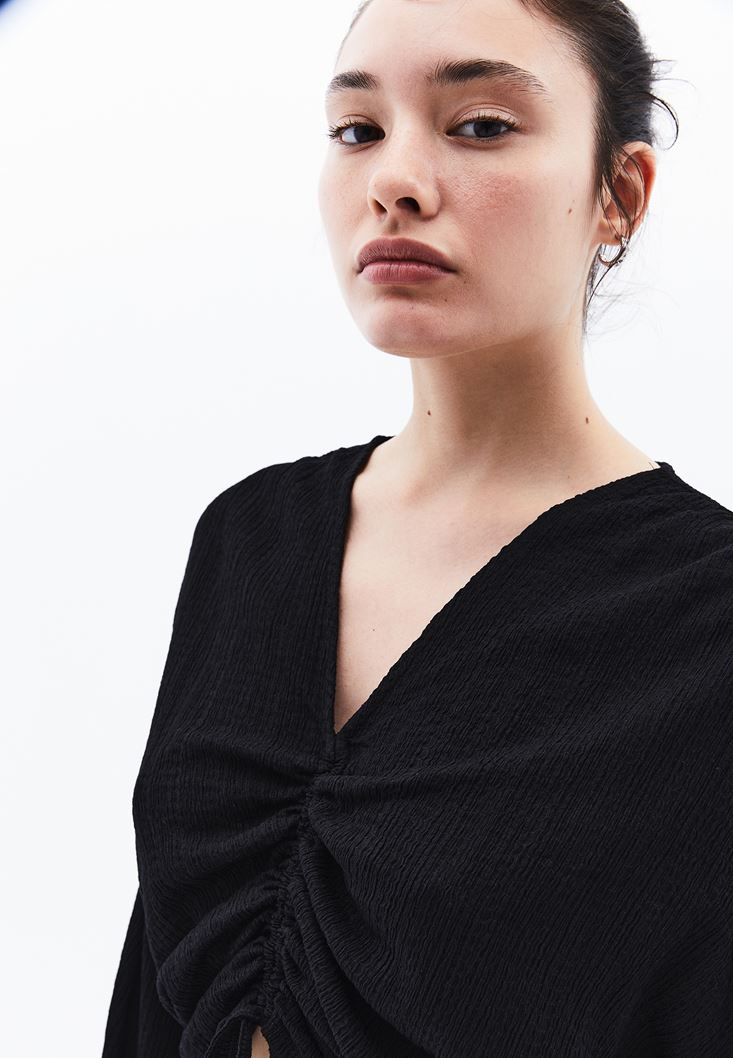 • Bayan Siyah Büzgü Detaylı Oversize Bluz