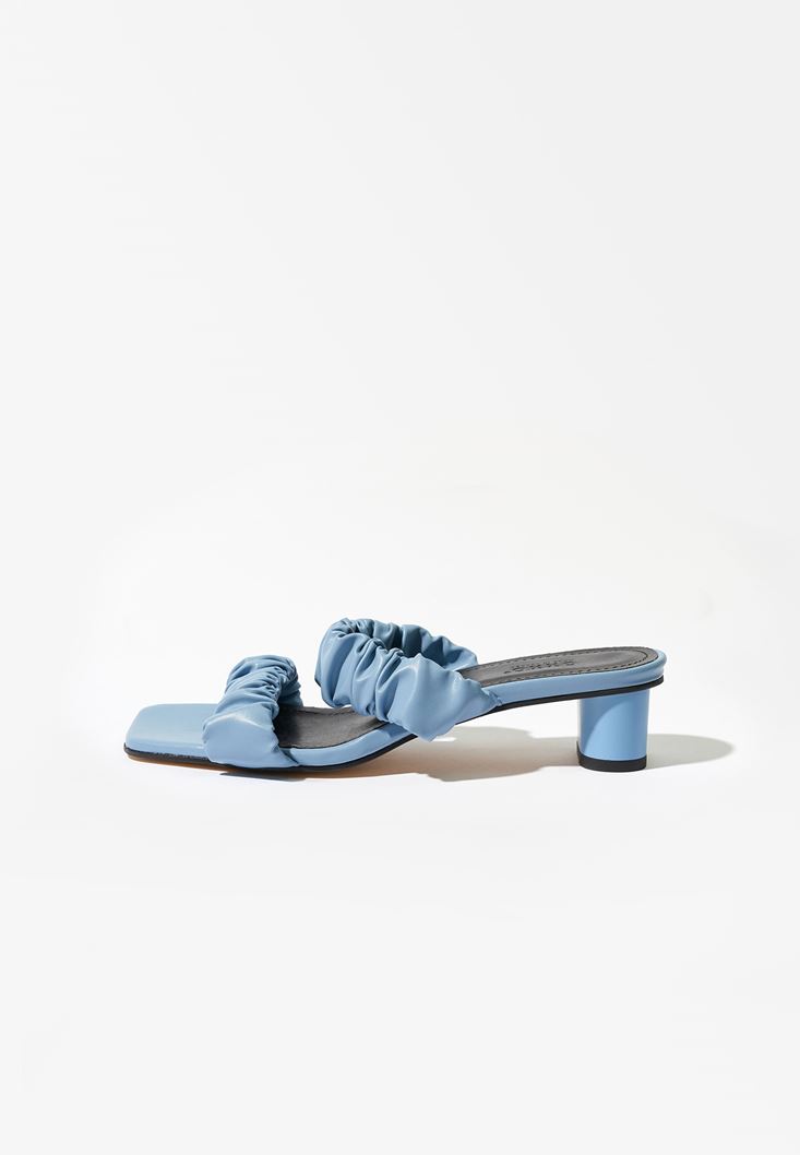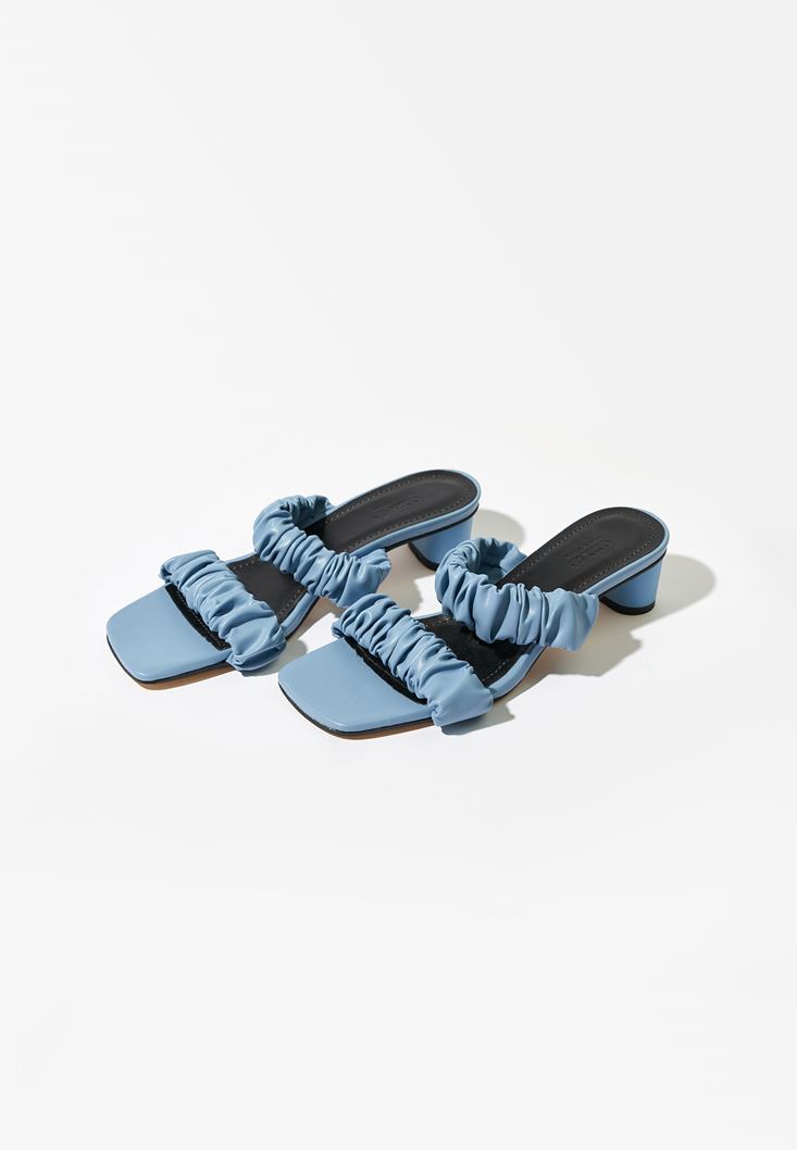 • Bayan Mavi Büzgü Detaylı Topuklu Terlik
