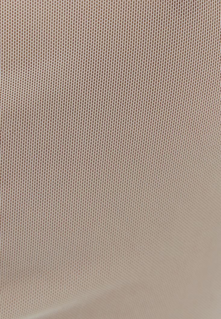 • Bayan Bej Büzgü Detaylı Tül Bralet