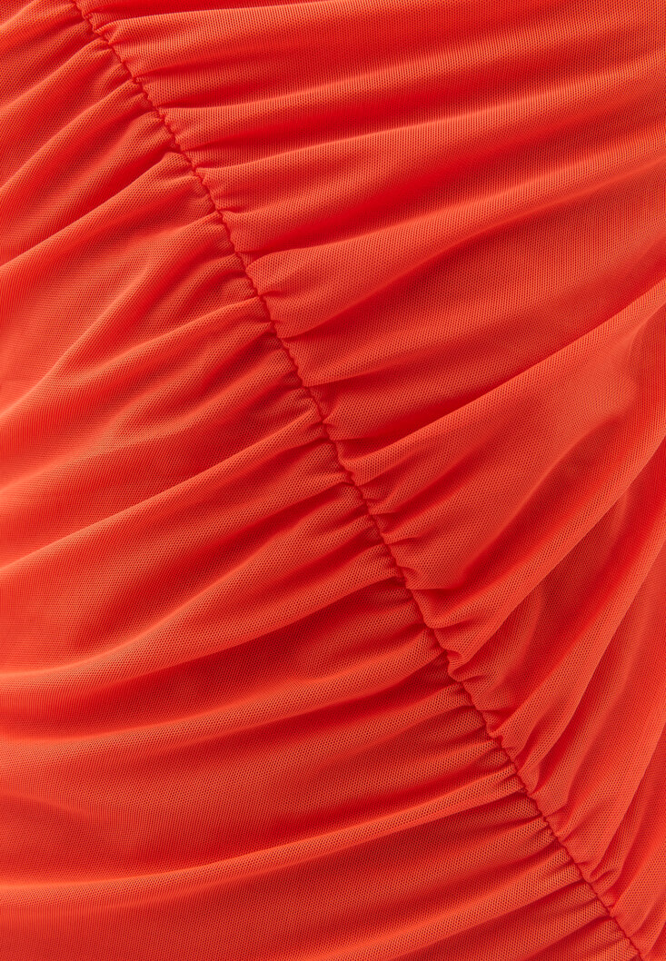 • Bayan Turuncu Büzgü Detaylı Uzun Elbise