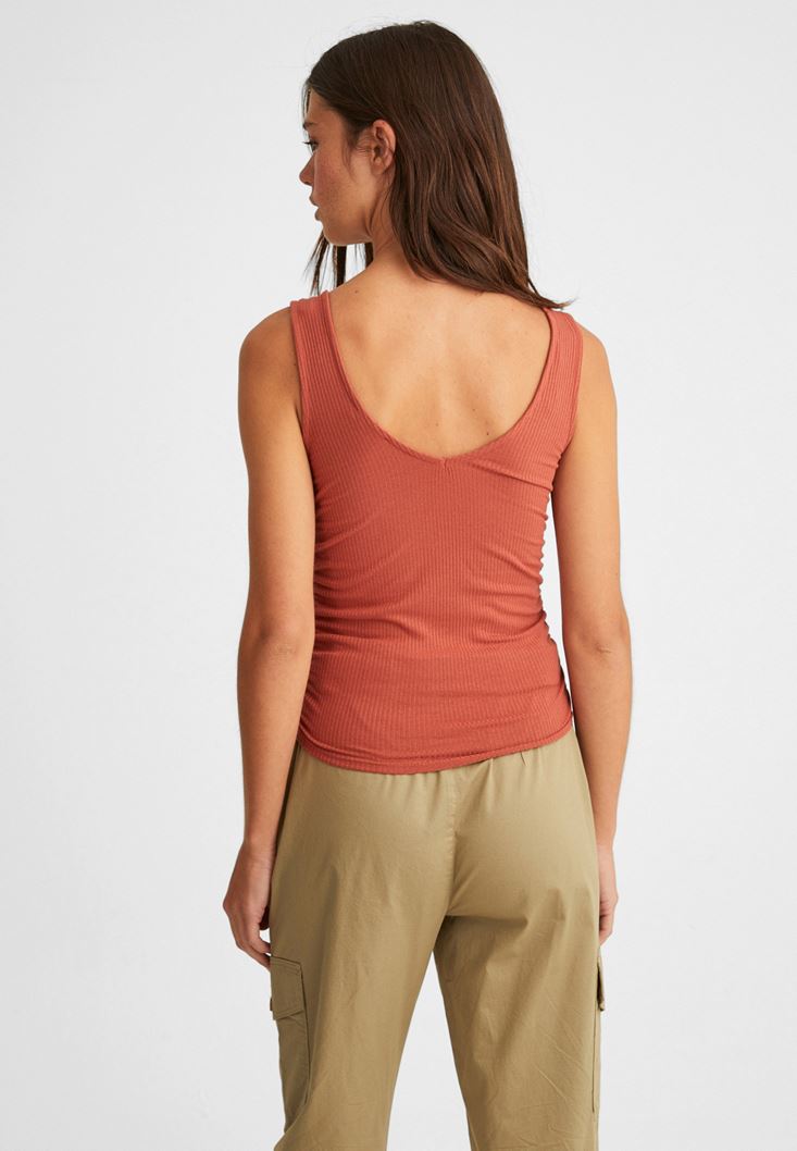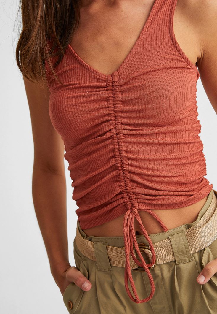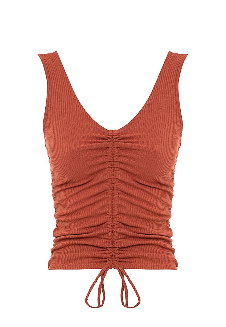Kahverengi Büzgü Detaylı V Yaka Atlet