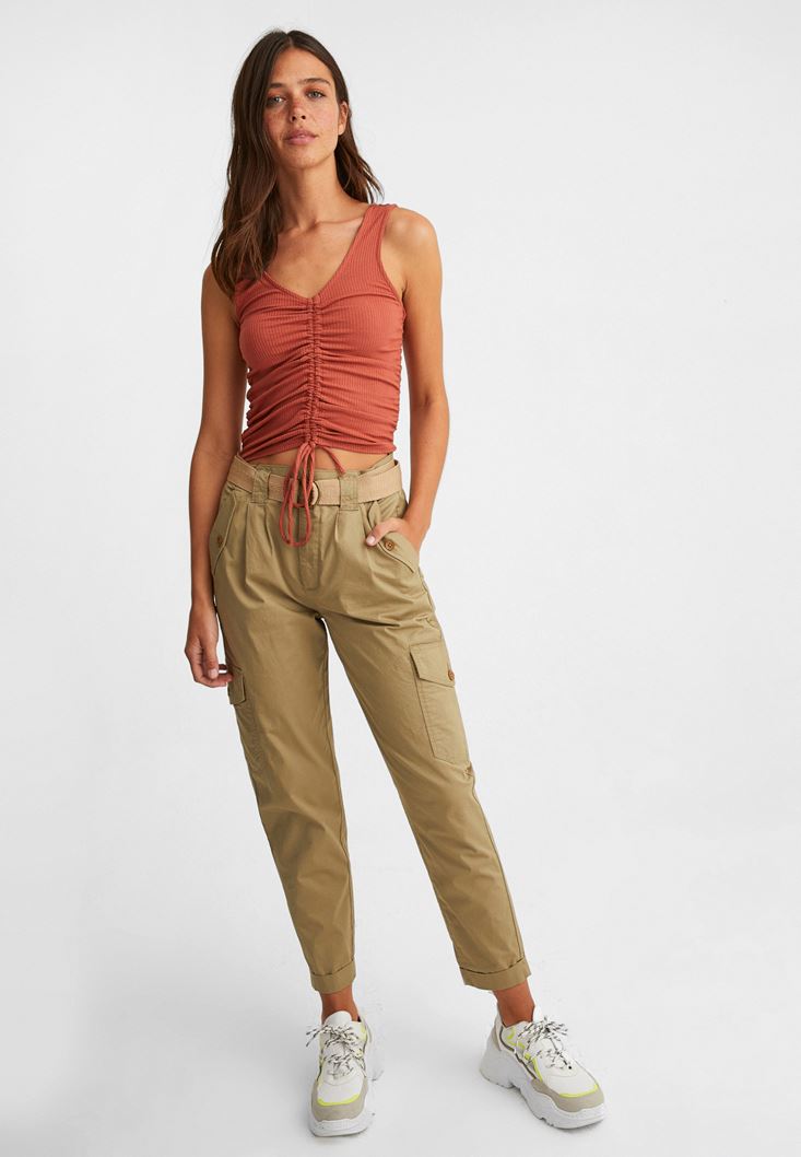 Büzgü Detaylı V Yaka Atlet modeli, viskon içerikli yumuşacık dokusu ve dikkat çekici görünümü ile sizlere sunuluyor. kadın atlet modeli, V yaka detayının zarif duruşu ve önündeki bağlamalı büzgü detayı sayesinde ön plana çıkıyor. Fitilli dokusu ve hareketli görüntüsü ile baş döndüren V yaka atlet modeli ile kombinlerinize enerji katabilirsiniz. Tarzınızı dilediğiniz gibi yansıtabileceğiniz kadın atlet modeli ile kargo pantolon modelleri tercih edebilirsiniz. Mini etek veya skinny pantolon modelleri ile kullanabileceğiniz büzgülü atlet modeli sayesinde kombin çeşitliliği elde edebilirsiniz. Oxxo'nun vazgeçilmez dokular ve ilgi çekici detaylarla sizlere sunduğu kadın atlet modelleri ile stilinizi ortaya çıkaran uyumlara ulaşabilirsiniz.