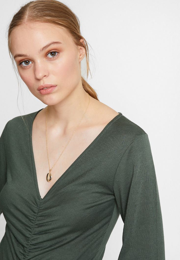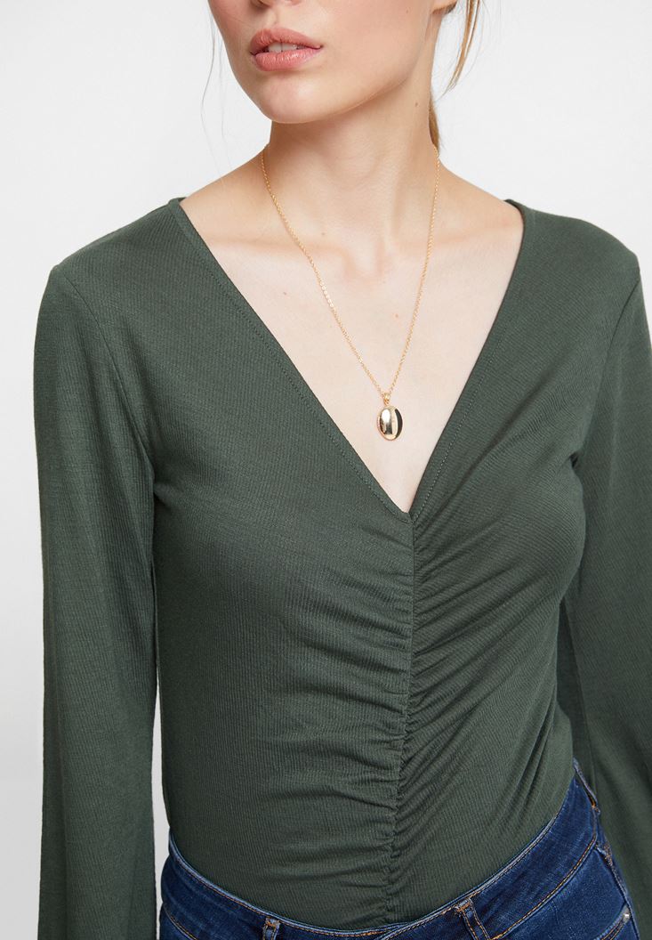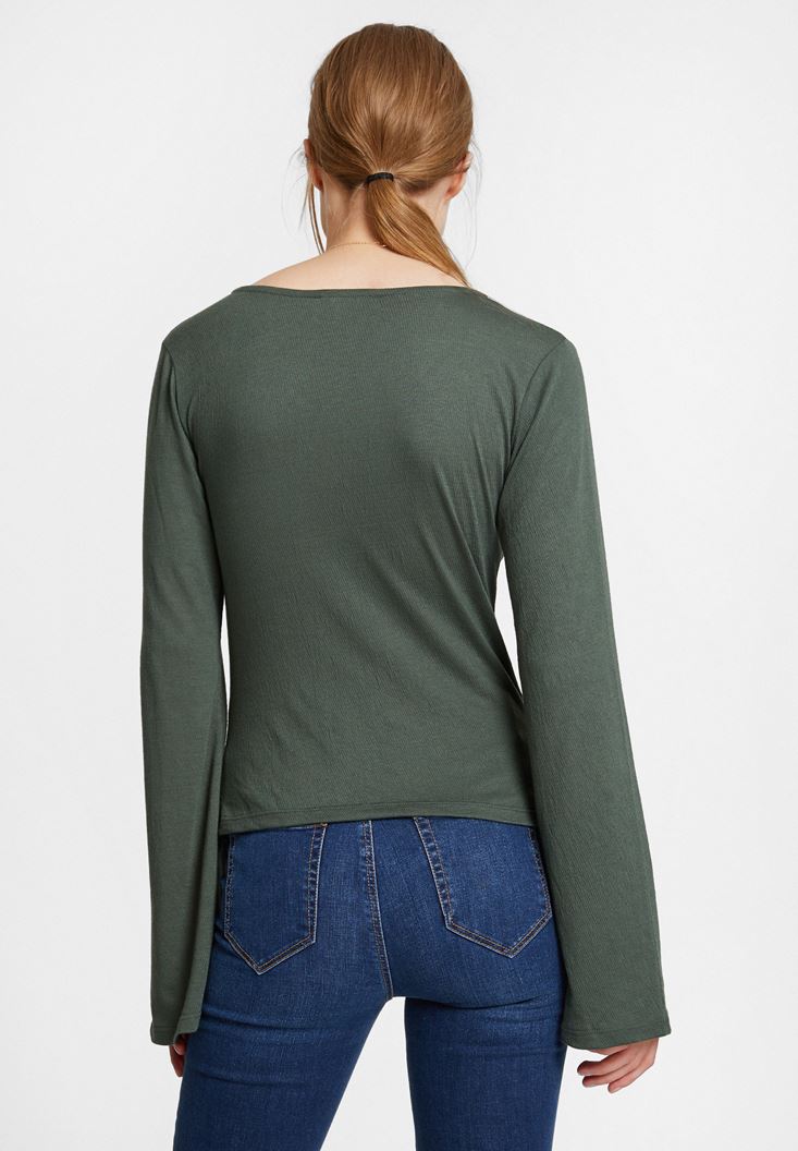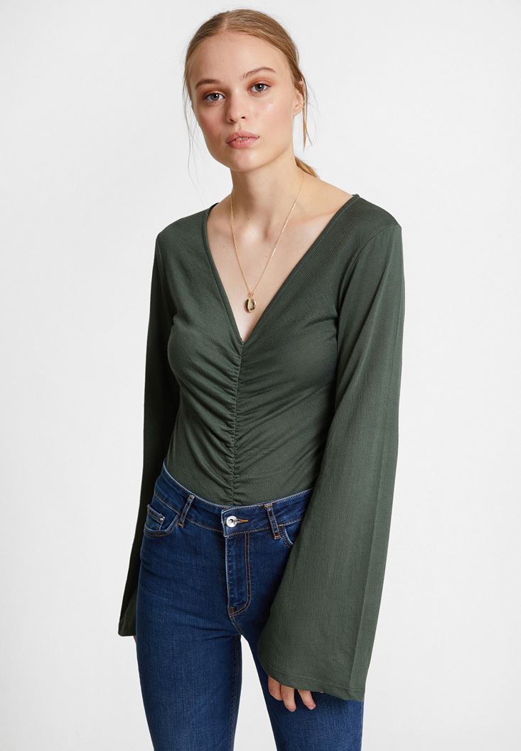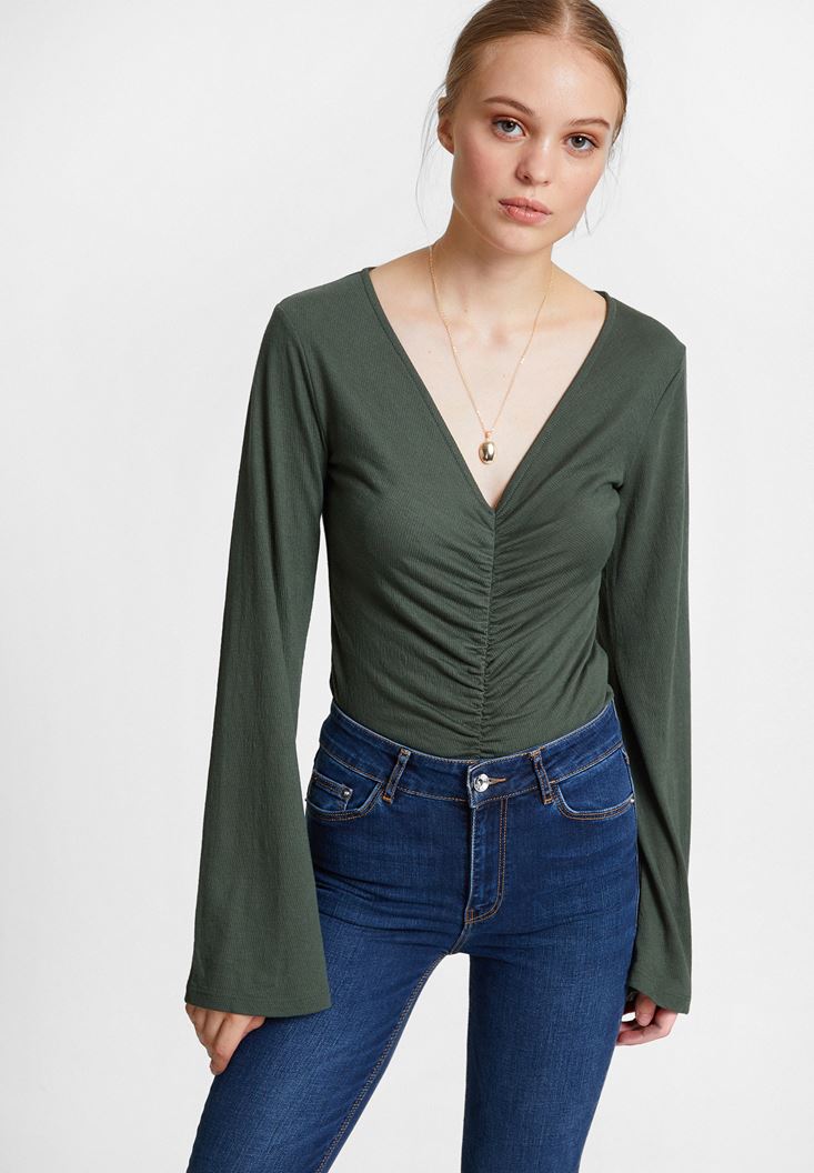 • Bayan Yeşil Büzgülü Flare Kol Bluz