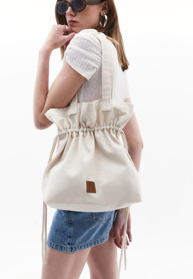 Krem Büzgülü Kol Çantası