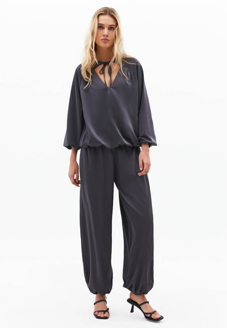 Büzgülü Saten Balon Pantolon – Satenin Akışkanlığı, Hacmin Özgünlüğü 🌫️