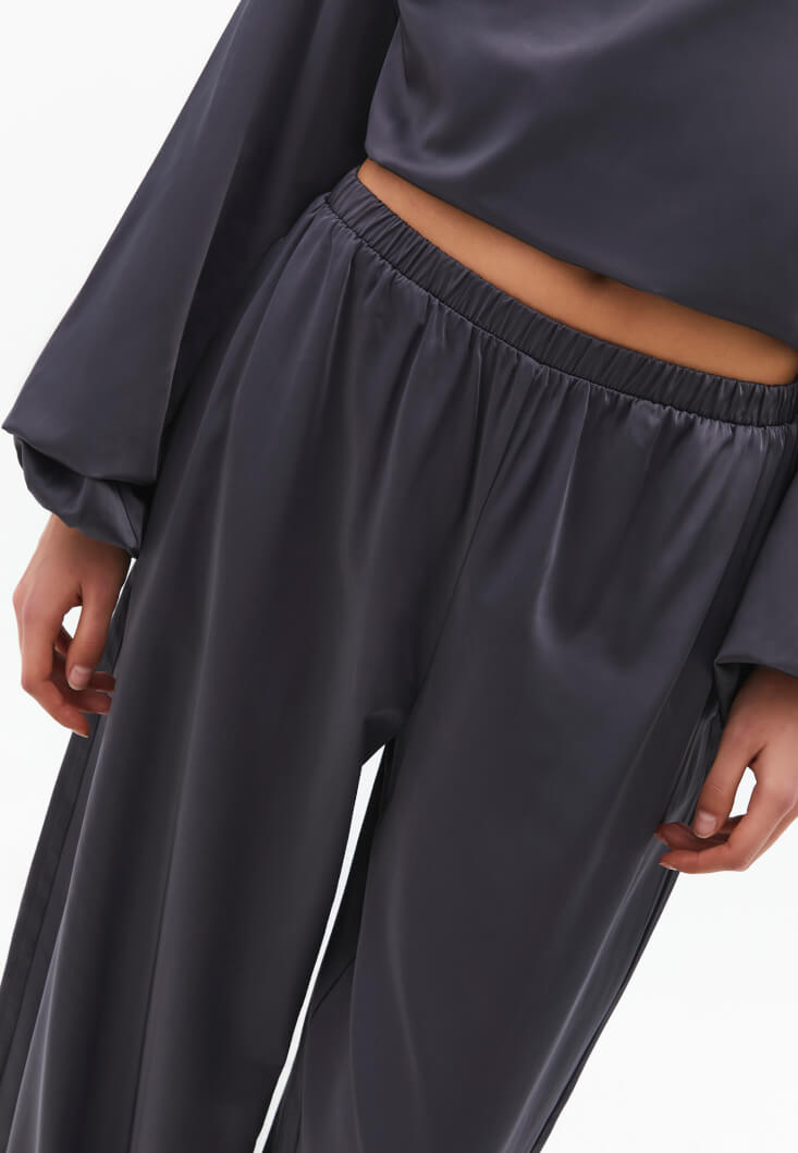Gri Büzgülü Saten Balon Pantolon