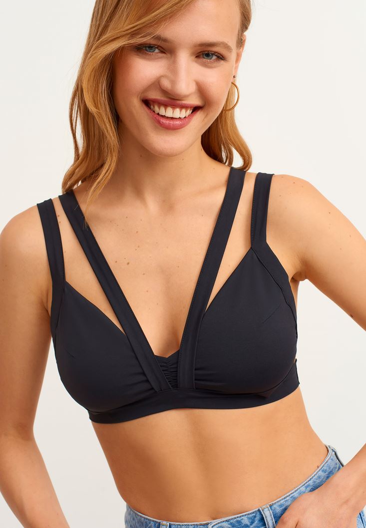 • Bayan Siyah Çapraz Askılı Büstiyer