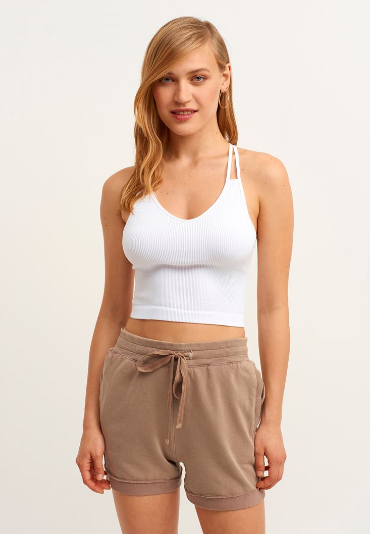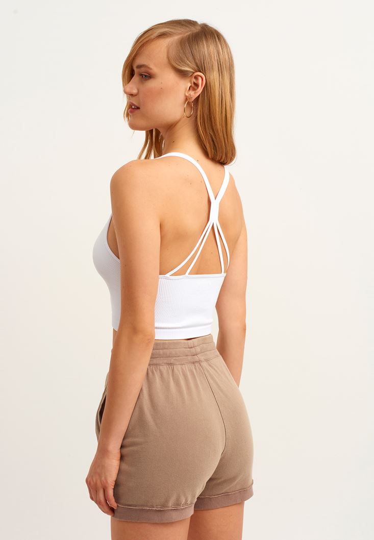 • Bayan Beyaz Çapraz Askılı Seamless Crop Top