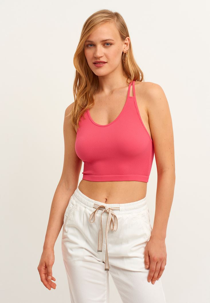 • Bayan Pembe Çapraz Askılı Seamless Crop Top