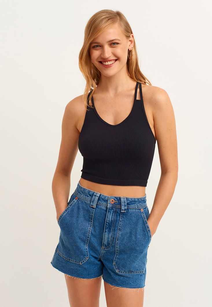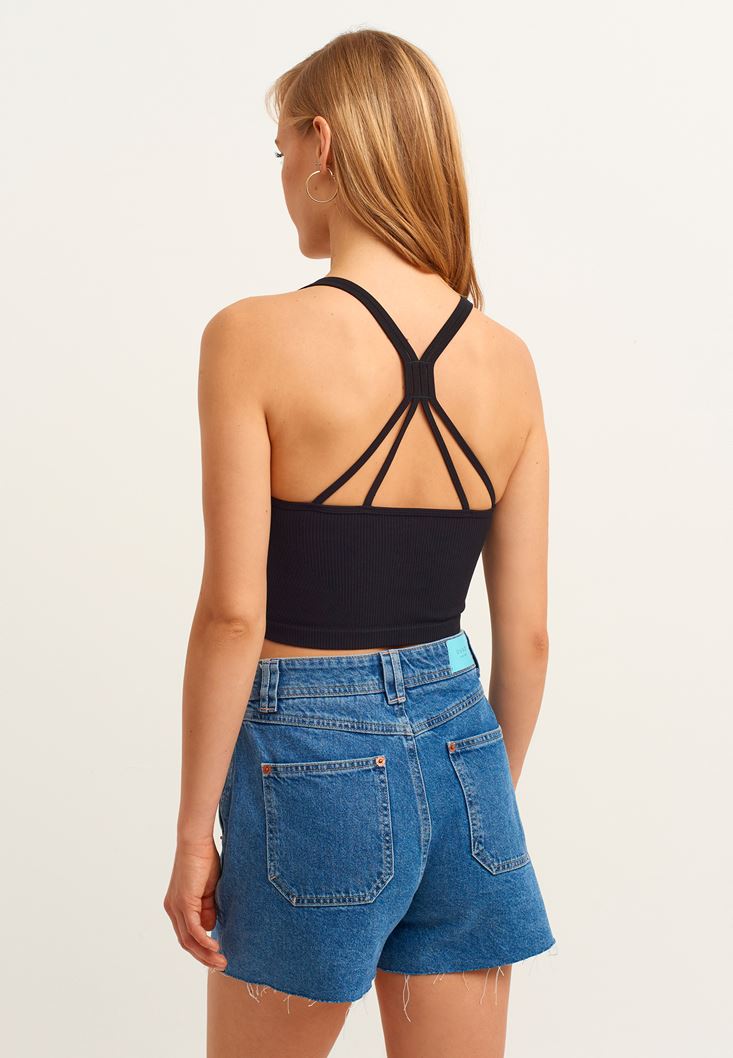 • Bayan Siyah Çapraz Askılı Seamless Crop Top