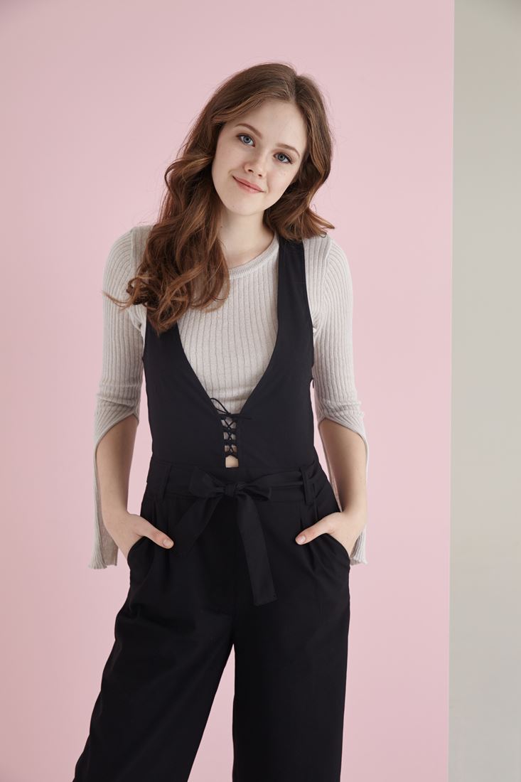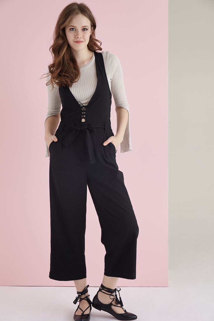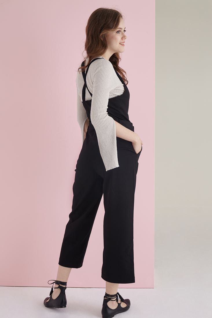 Siyah Çapraz Askılı Tulum