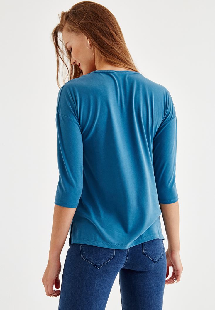 • Bayan Mavi Çapraz Biye Detaylı Bluz