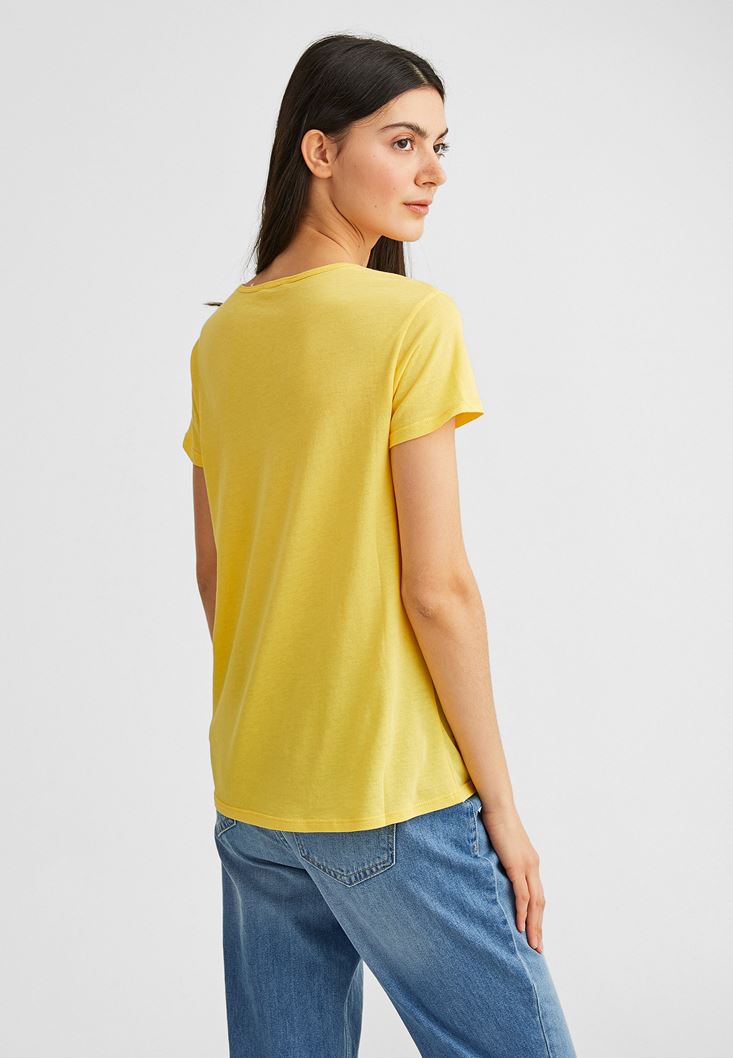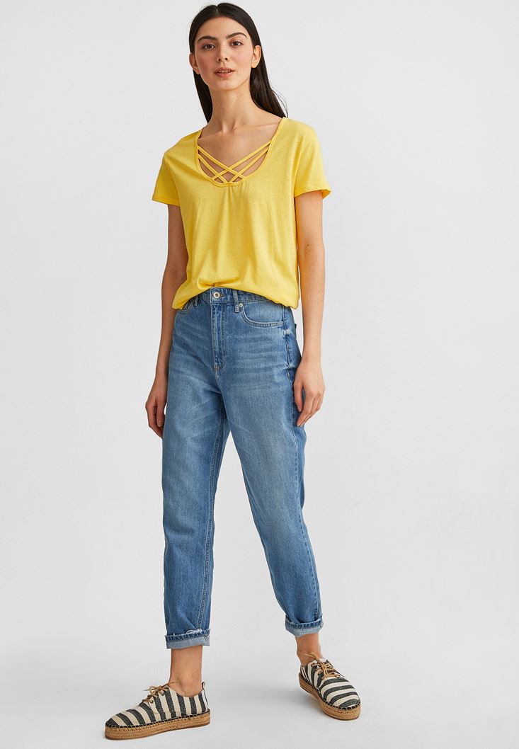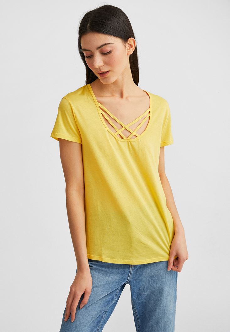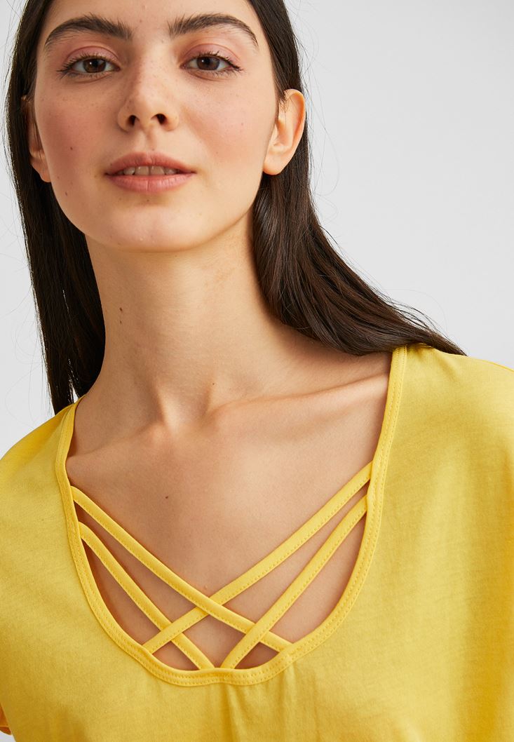 • Bayan Sarı Çapraz Biye Detaylı Tişört ( MODAL )
