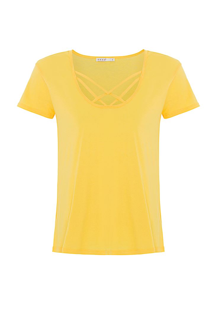 Sarı Çapraz Biye Detaylı Tişört ( MODAL )