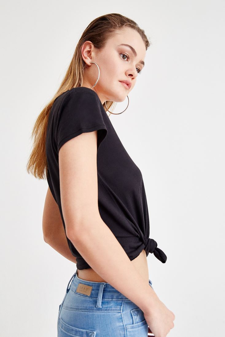 Siyah Çapraz Biye Detaylı Tişört ( MODAL )