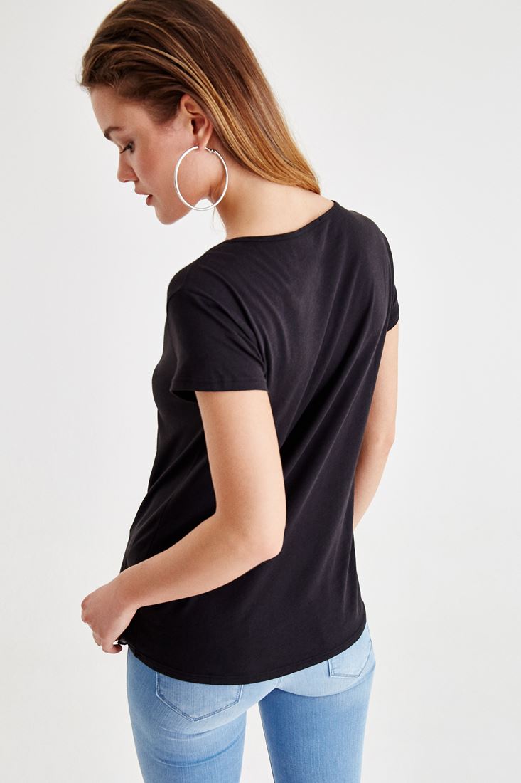 • Bayan Siyah Çapraz Biye Detaylı Tişört ( MODAL )
