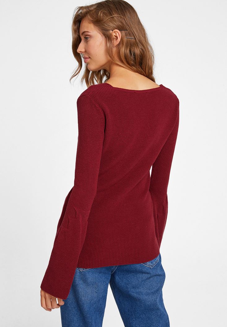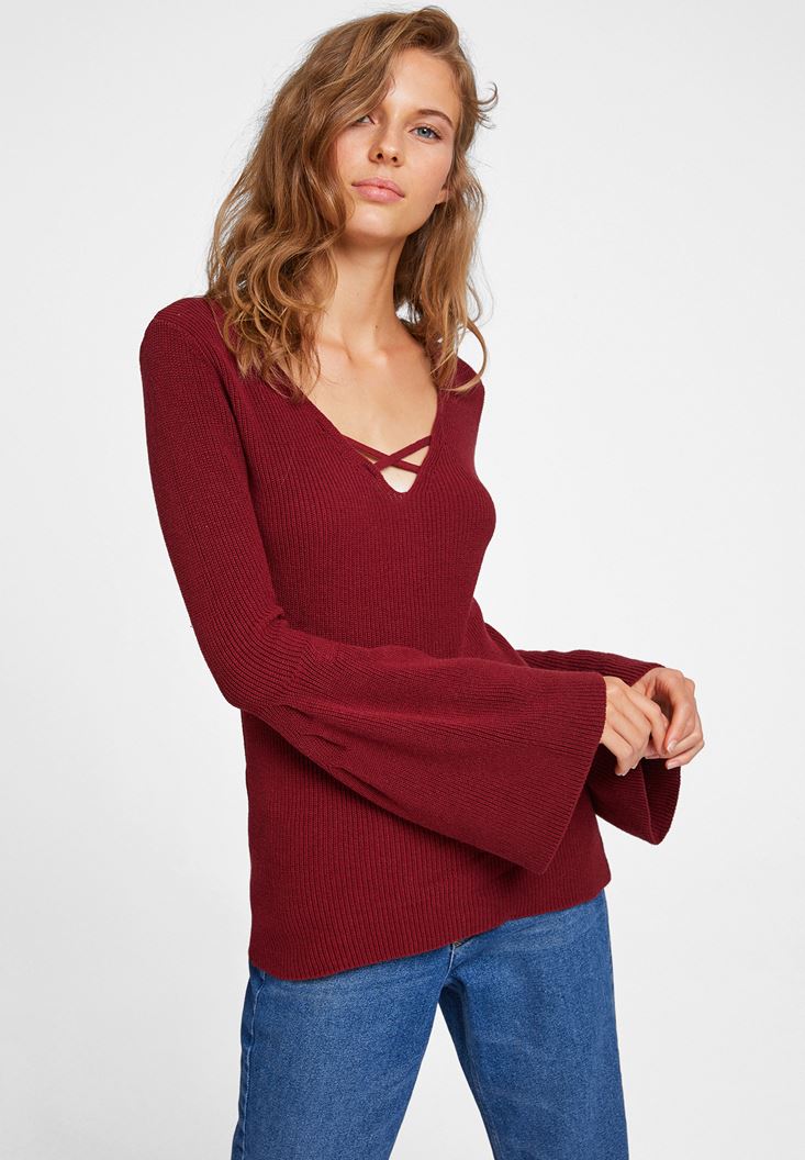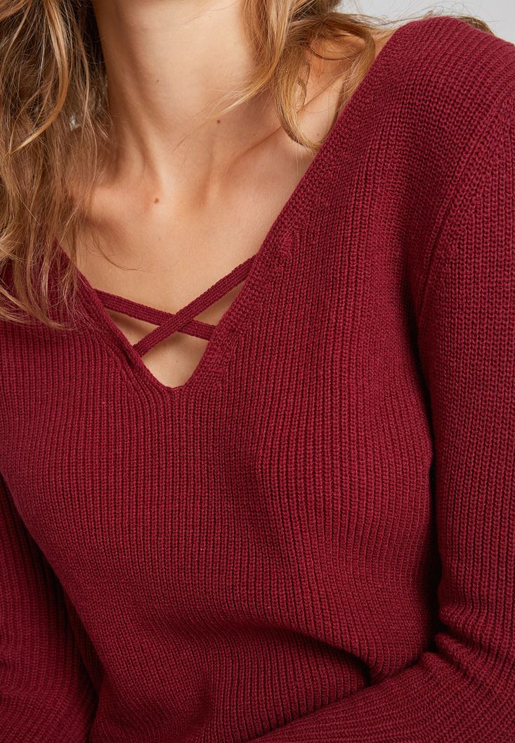 • Bayan Bordo Çapraz Biye Detaylı Triko