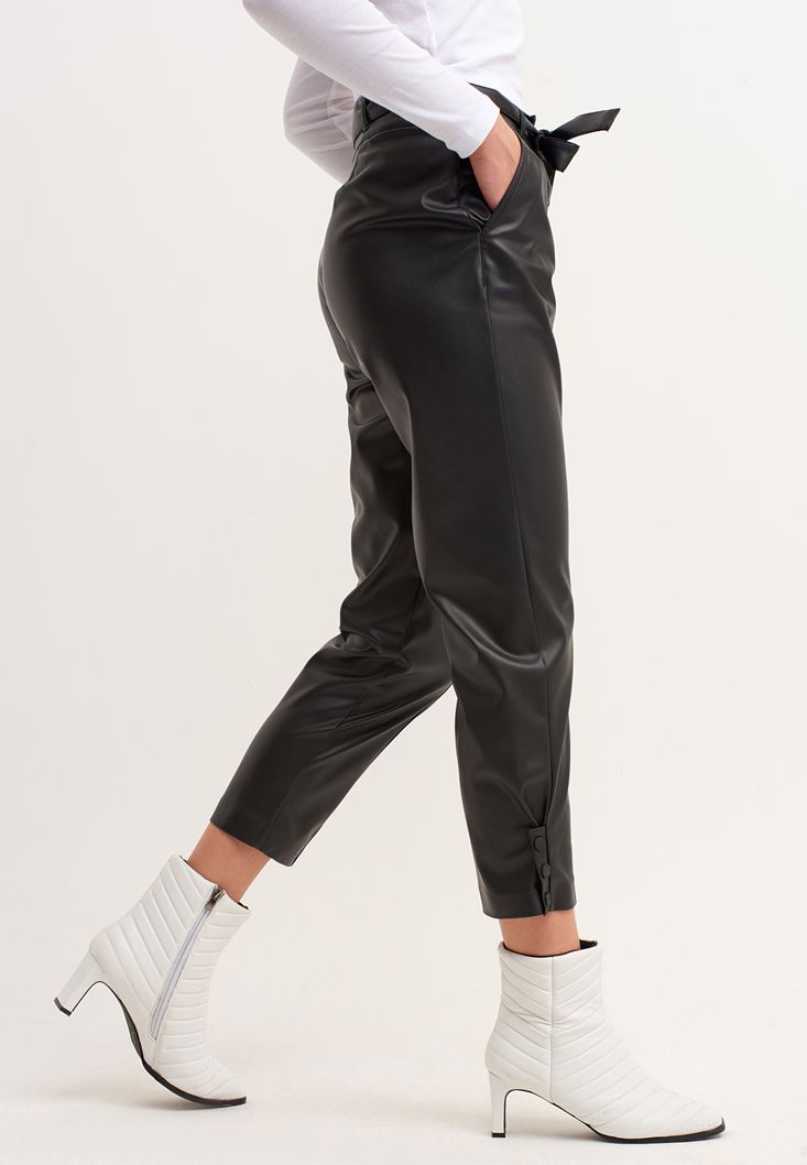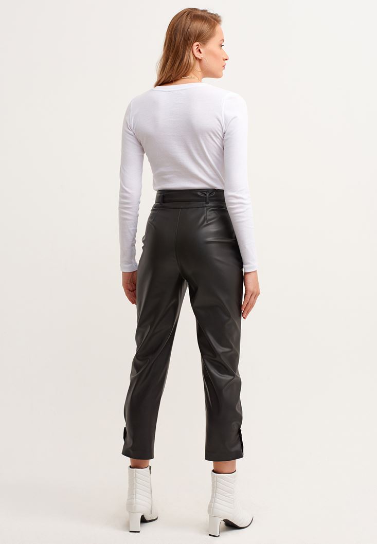 • Bayan Siyah Carrof-Fit Vegan Deri Pantolon