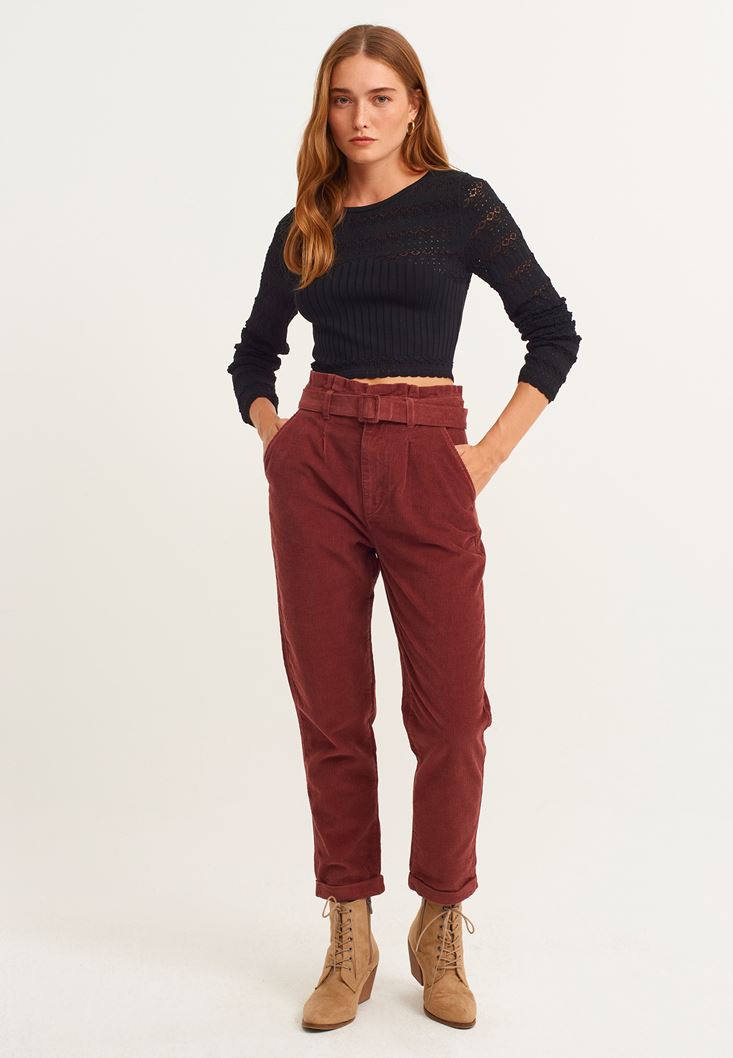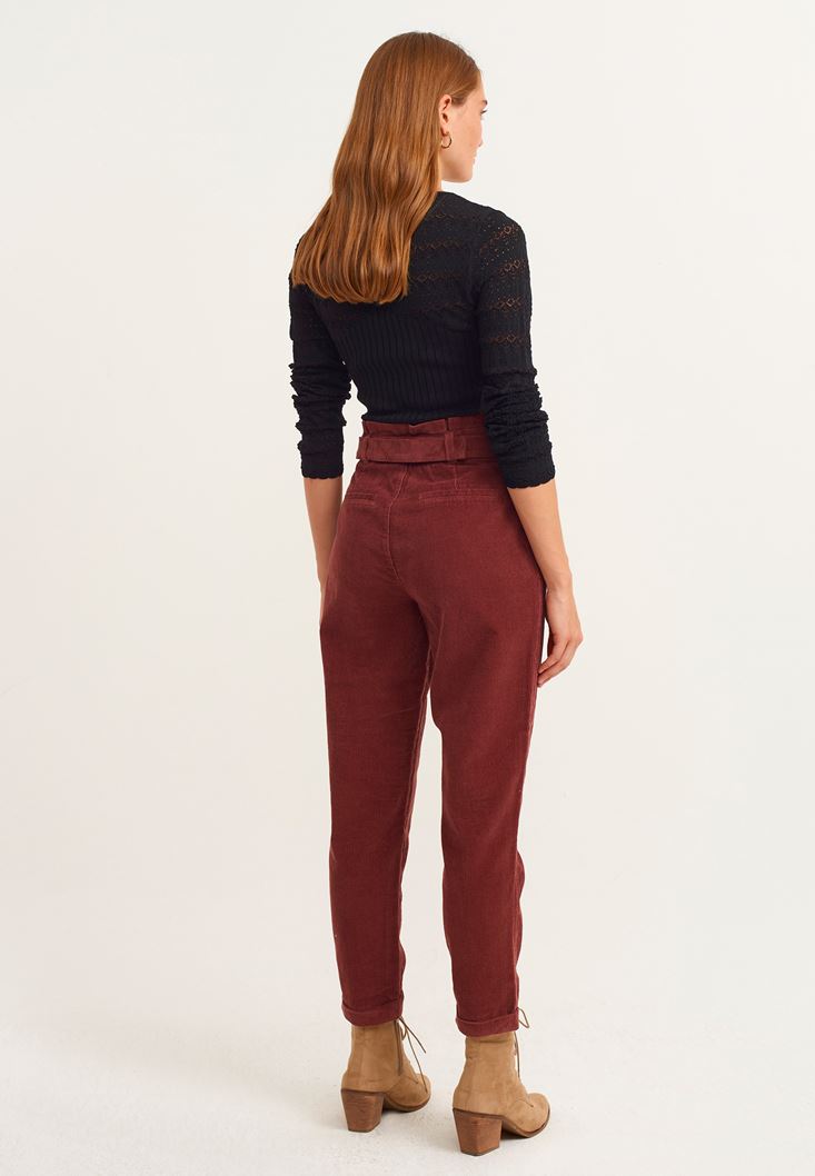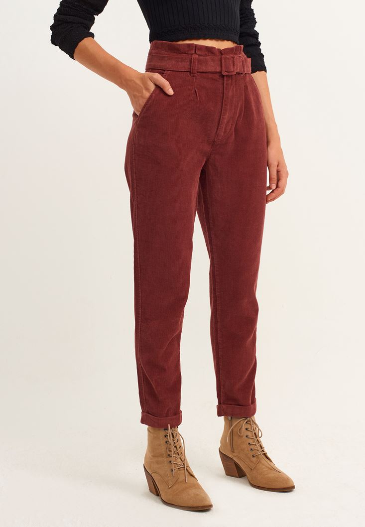 Kiremit Carrot-Fit Kadife Pantolon