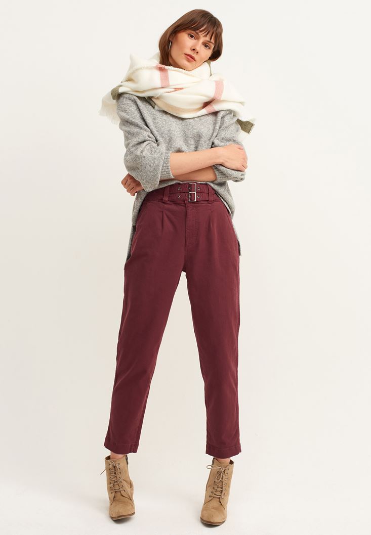 • Bayan Bordo Carrot-Fit Kemerli Pantolon