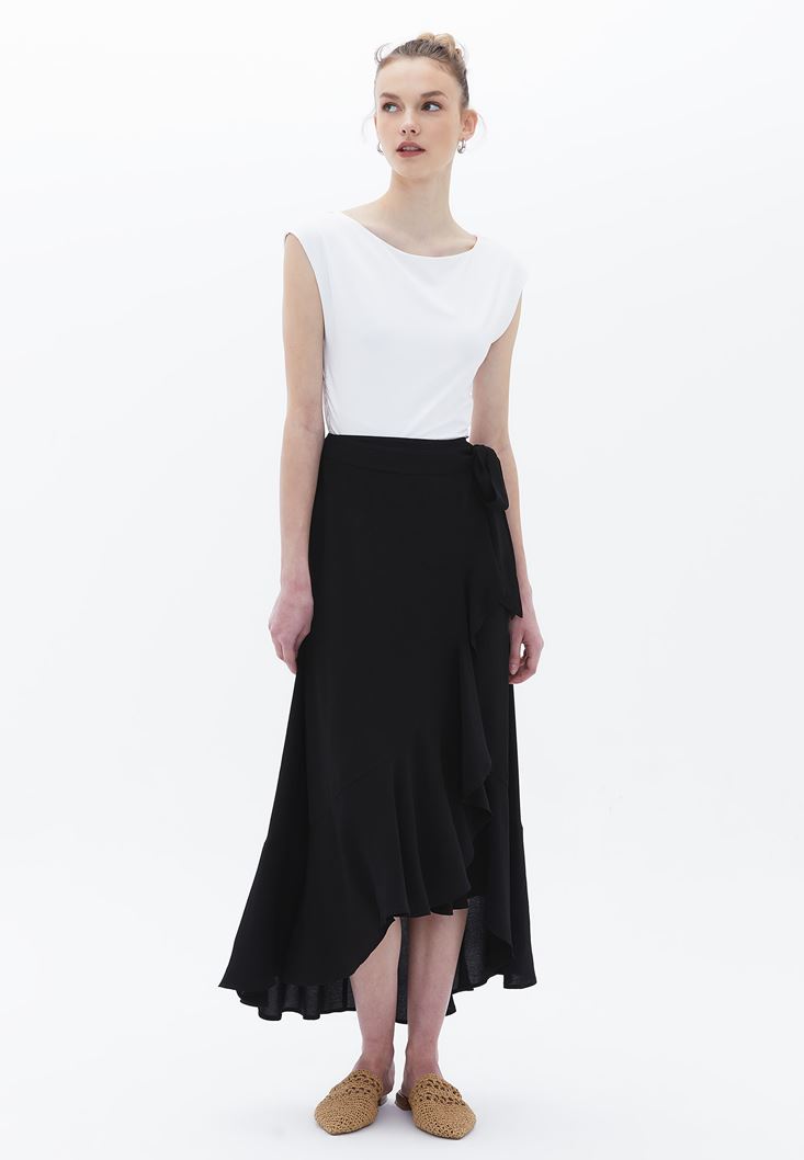 Bağlamalı Uzun Etek ve Tişört Kombini