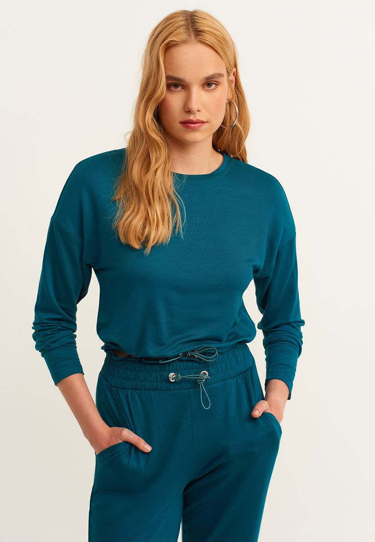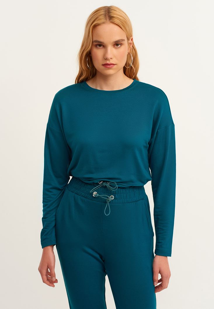 Bel Detaylı Sıfır Yaka Sweatshirt