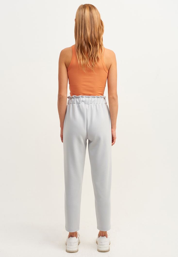 Yumuşak özel sweat doku, bağcıklı bel, ön iki cep, carrot-fit ve yüksek bel.