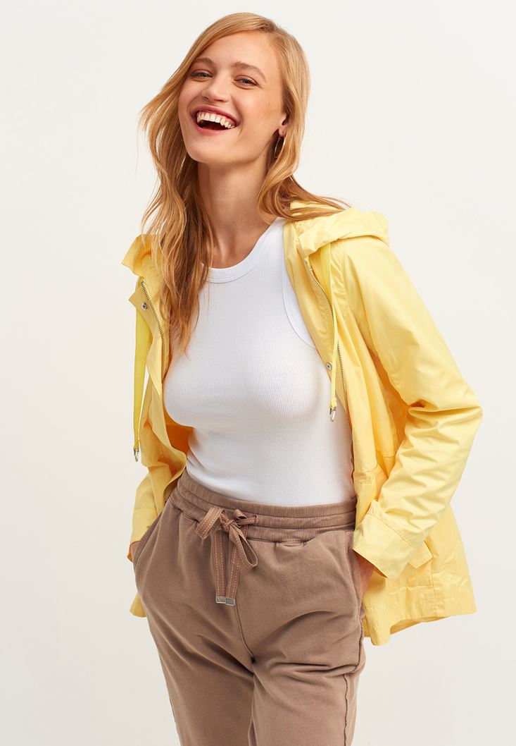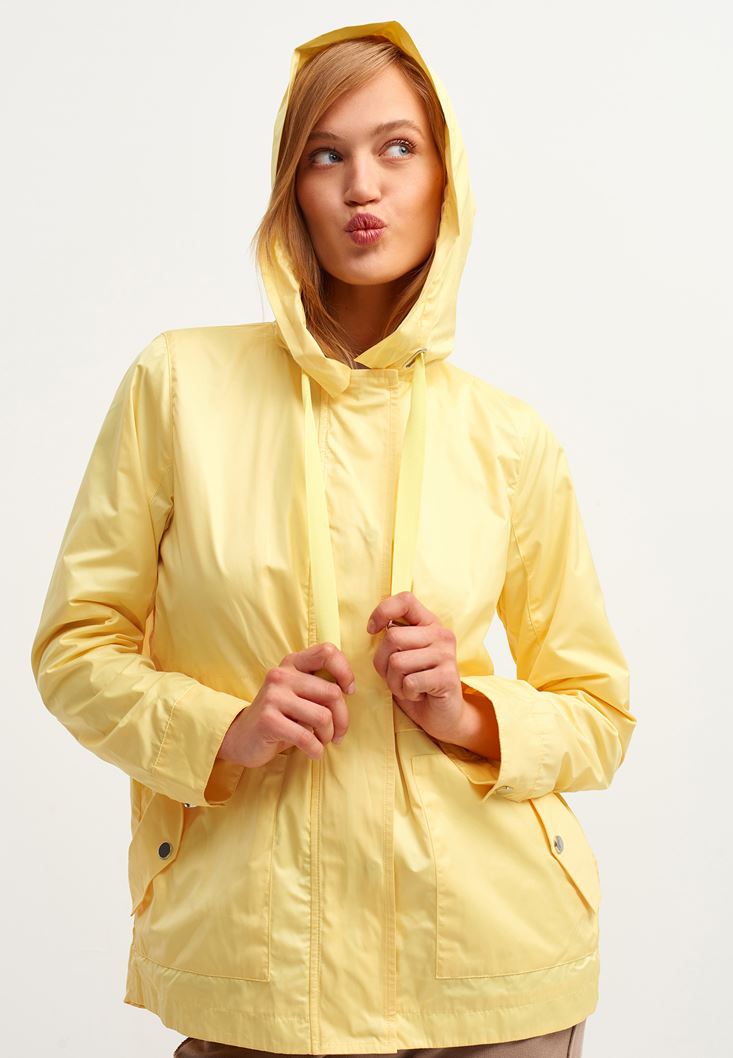 • Bayan Sarı Casual Cepli ve Kapüşonlu Yağmurluk
