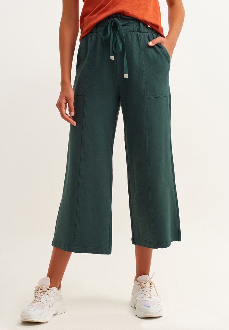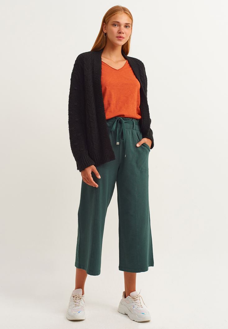 Pamuklu dokusu sayesinde hem evde hem de dışarıda sana rahatlık sunabilecek bir parça! Bol kalıbın konforu, cepli yapısı ve dikiş detayları ile ön plana çıkan culotte pantolon modeli, mevsim boyunca sana yol arkadaşlığı yapabilir! Onu dikişsiz crop toplarla ve sneakerlarla buluşturarak hafta sonunun keyfini çıkar... :)