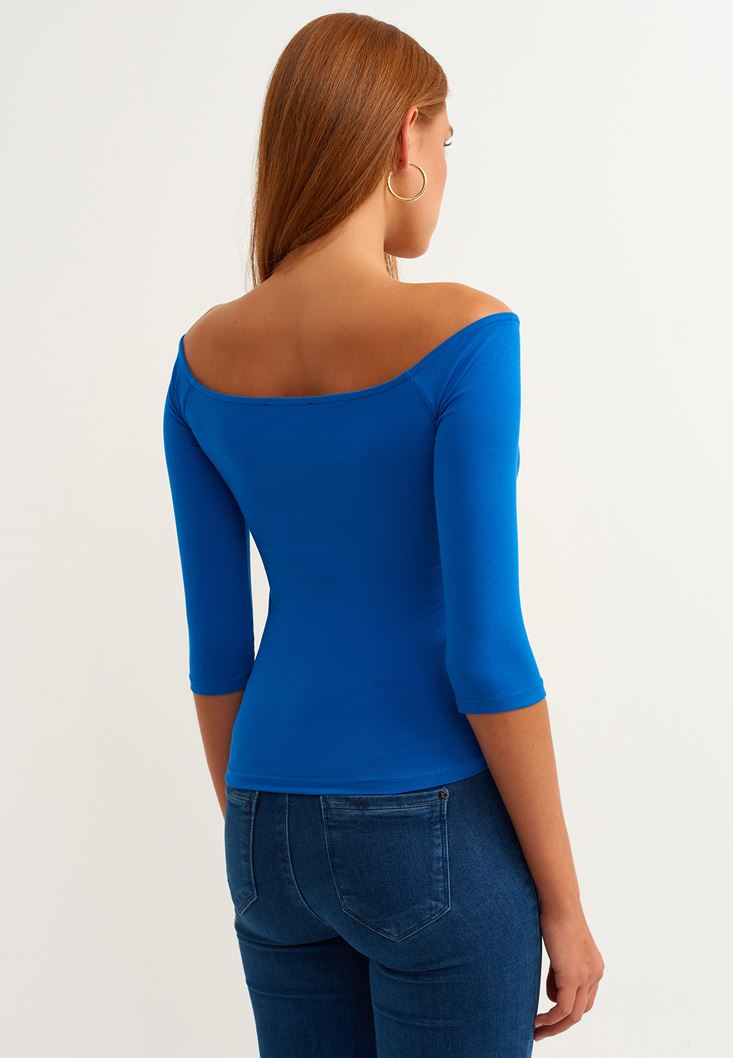 • Bayan Mavi Casual Deep V-Neck Tişört
