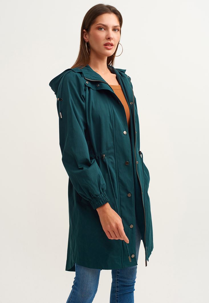 Yeşil Casual Kapüşonlu Parka