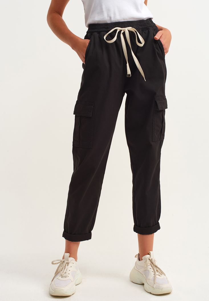 Pamuklu dokunun en çok yakıştığı pantolonlardan biri olarak karşına çıkan bu parça bir şansı hak ediyor! Back to School koleksiyonunda yerini alan kargo pantolon ile vazgeçilmez kalıbın rahatlığına hayran kalma ihtimalin çok yüksek... Onu postallarla veya sneakerlarla birleştirerek hafta sonu buluşmalarına, arkadaş toplantılarına veya uzun yürüyüşlere çıkabilirsin... Aradığın doğallık için bu kargo pantolon modeli çok uygun! :)