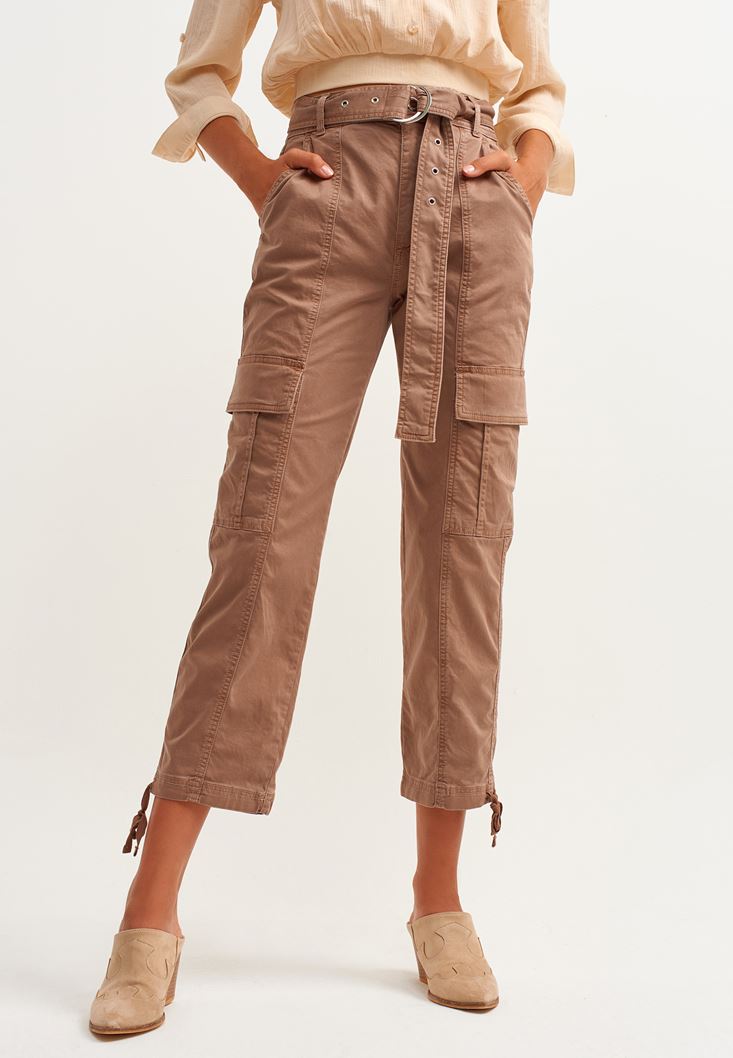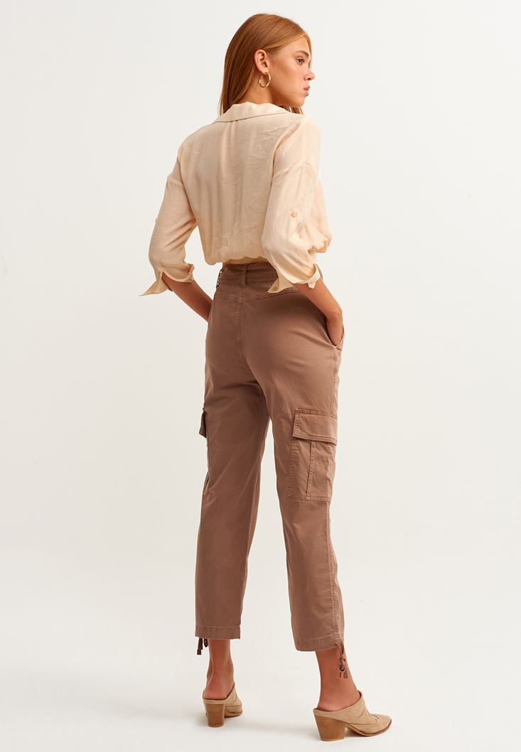 • Bayan Açık Kahverengi Casual Kemerli Kargo Pantolon