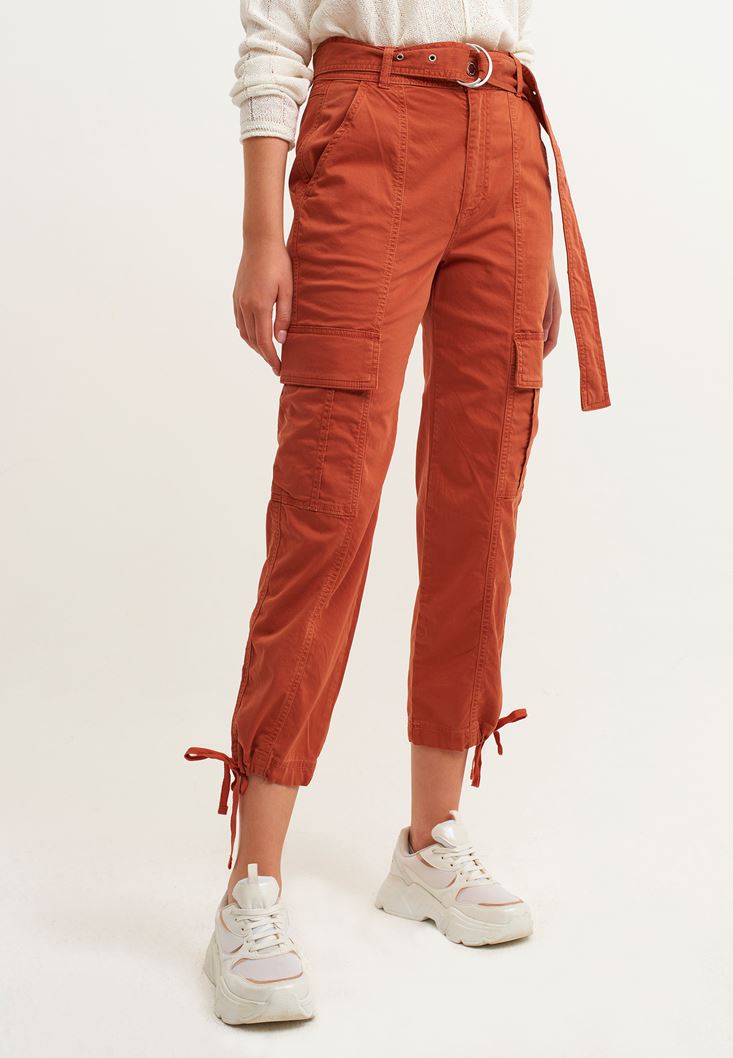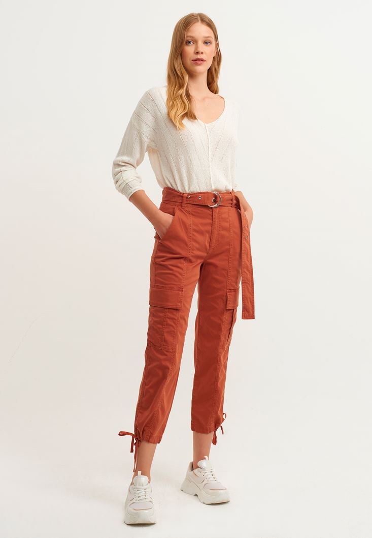 • Bayan Kiremit Casual Kemerli Kargo Pantolon
