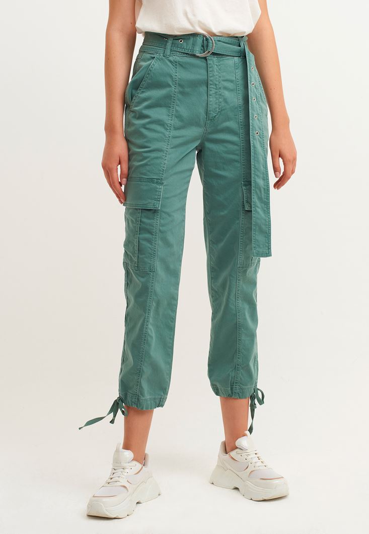 • Bayan Yeşil Casual Kemerli Kargo Pantolon