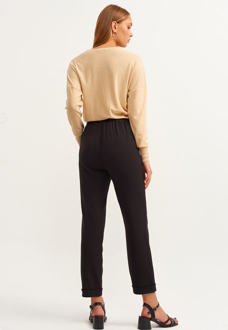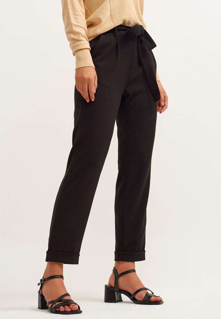 • Bayan Siyah Casual Pileli ve Kuşaklı Pantolon