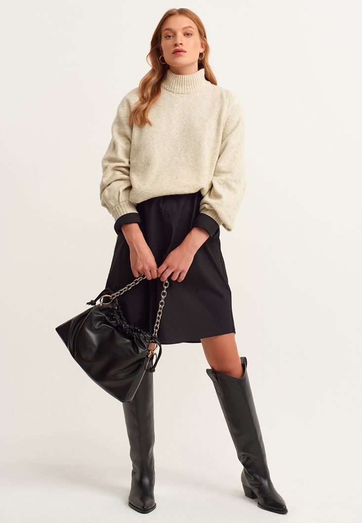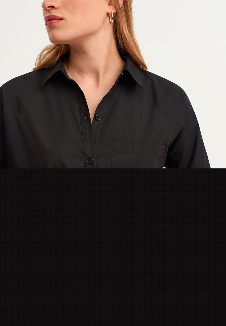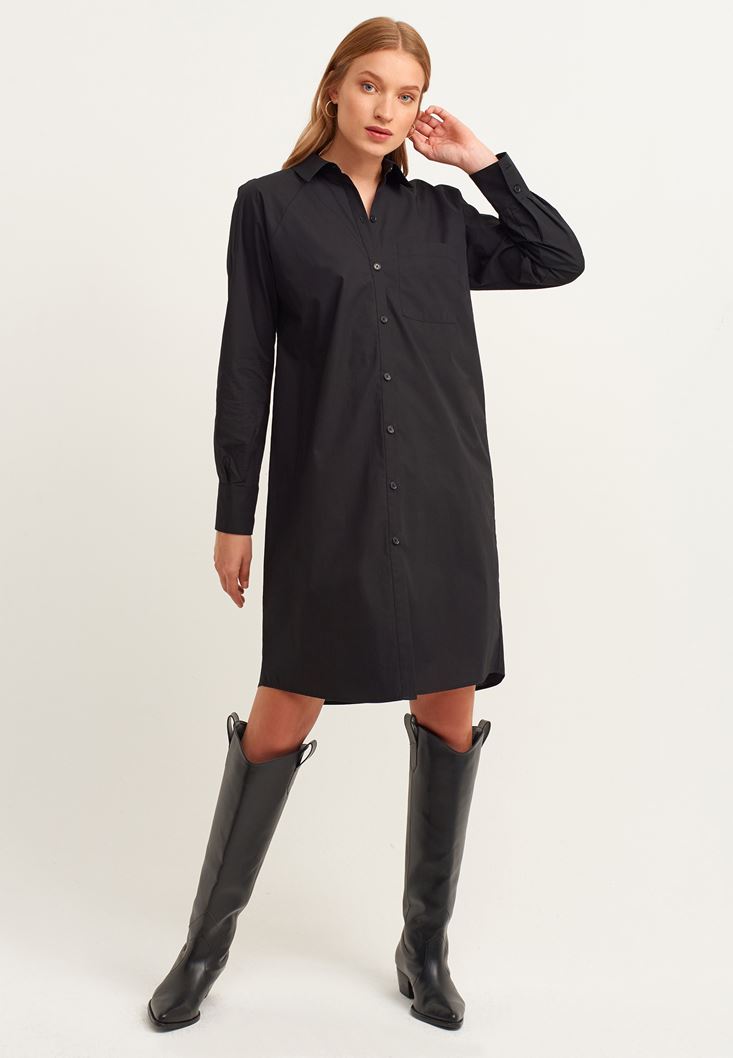 Siyah Casual Poplin Gömlek Elbise