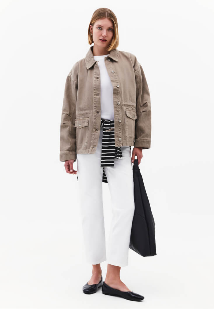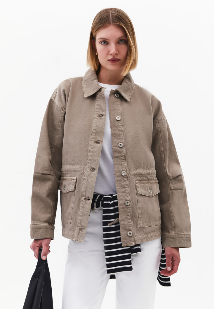 • Bayan Bej Cep Detaylı Ceket