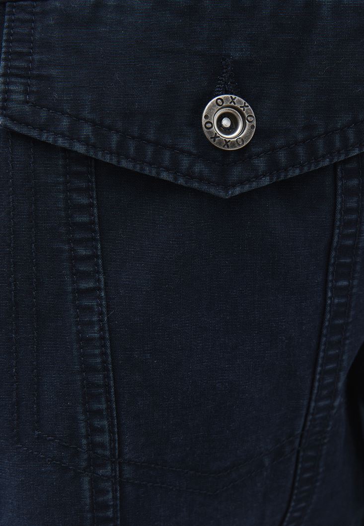 Lacivert Cep Detaylı Crop Ceket ( TENCEL™ )