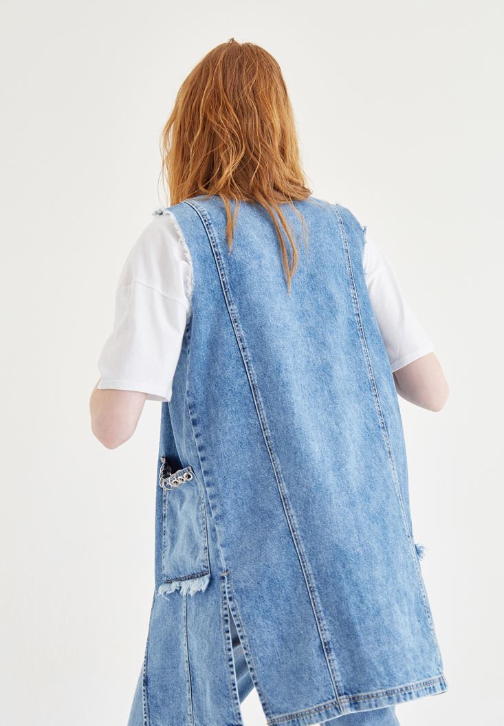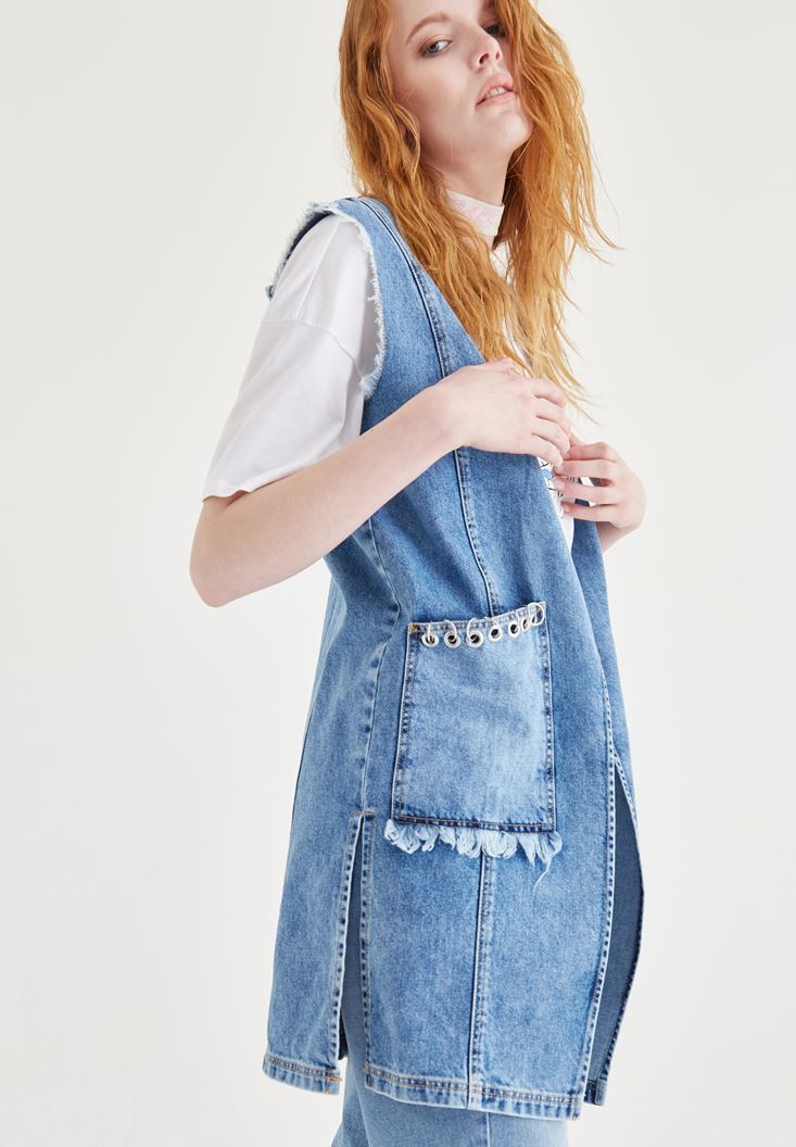• Bayan Mavi Cep Detaylı Jean Yelek