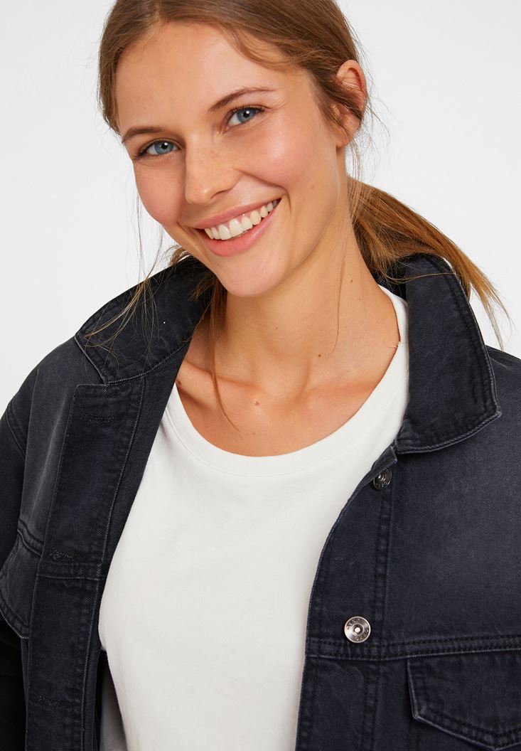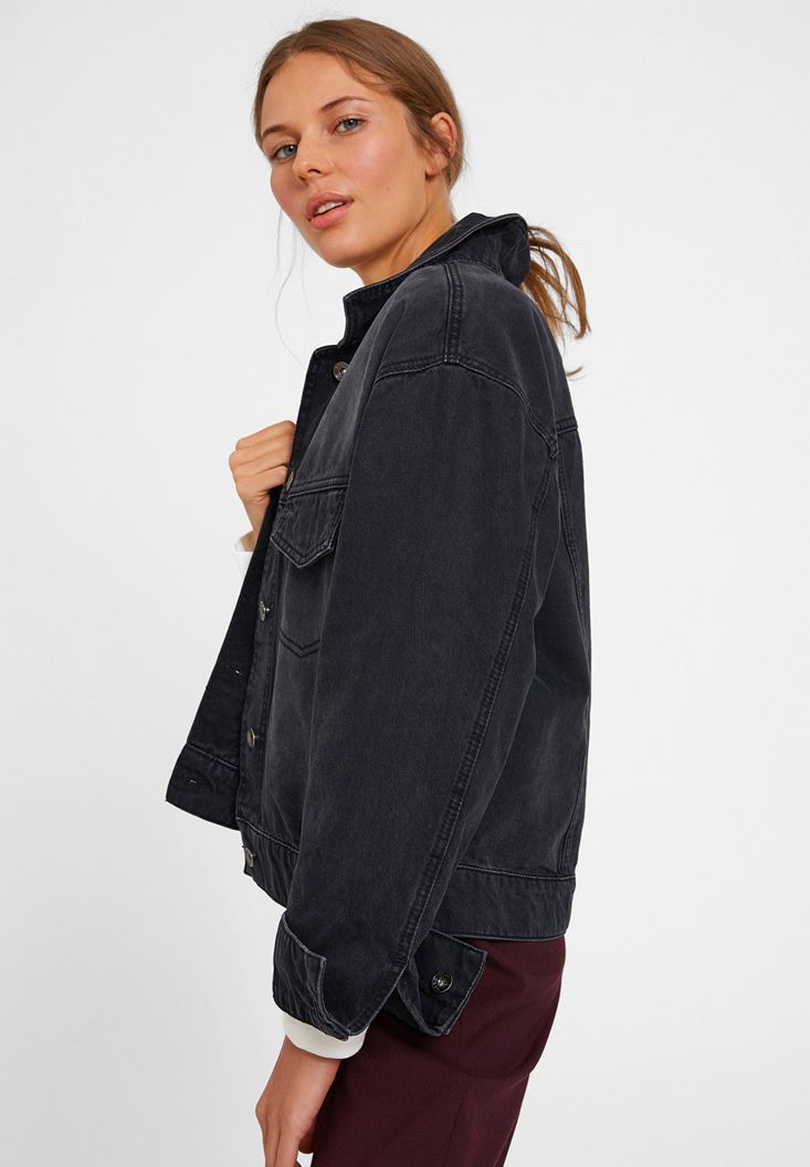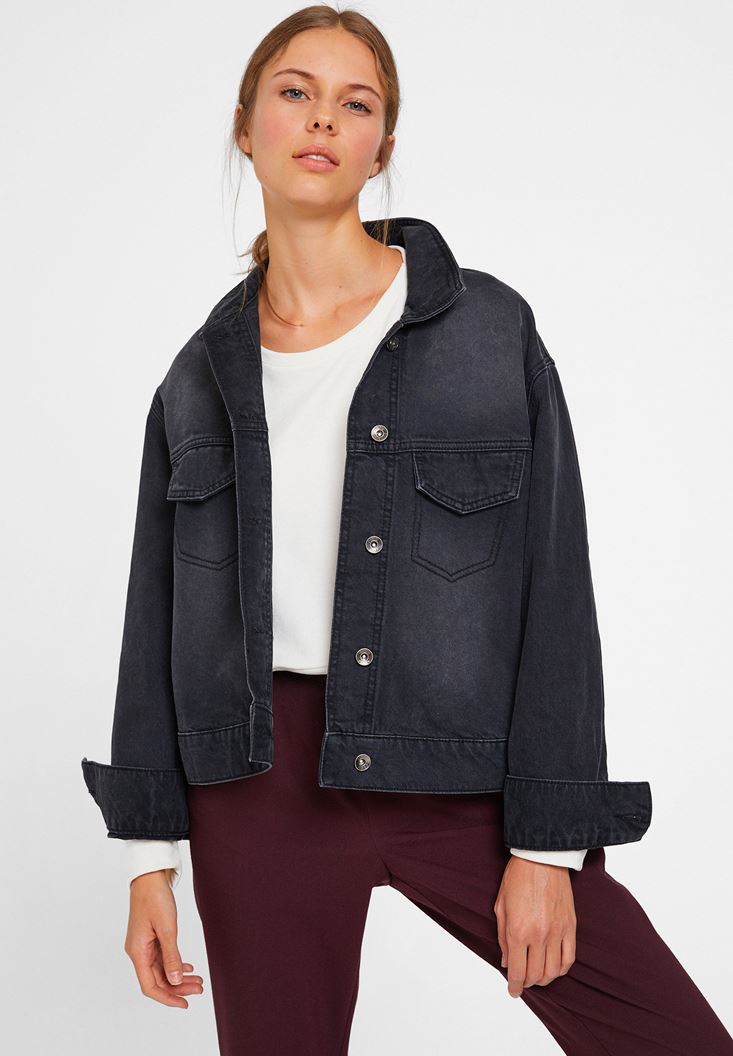 • Bayan Siyah Cep Detaylı Kısa Denim Ceket